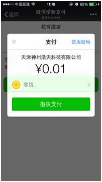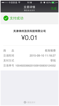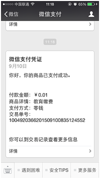 支付成功后可以看到“微信支付”返回的支付凭证: