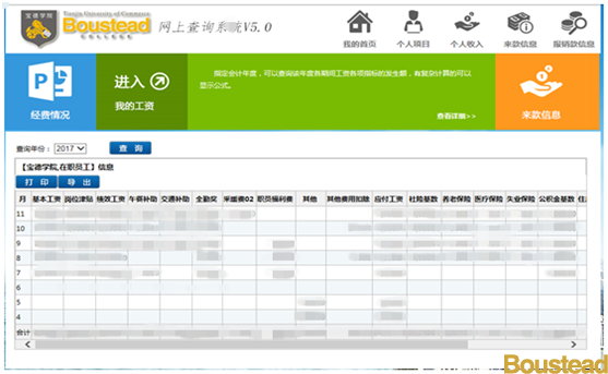 教工登录系统后将看到自己的首页,通过点击“个人工资”可以查看历史工资明细以及各项目汇总。