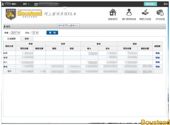 进入领导角色后,可以显示按照项目大类汇总的项目年初、往来、收支、结余信息。