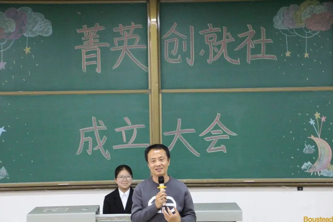 高学争老师在社团成立大会中表示对李津涵主任的感谢,创办社团,是为了锻炼社员们的合作能力,帮助大家提前了解市场,了解社会。希望菁英创就社在社员们的努力下,发挥更大的作用,越来越好。