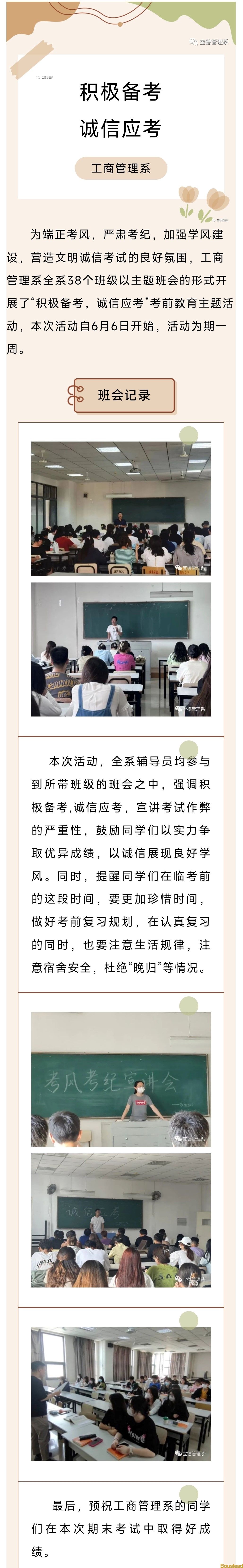 【报道】学风工程|“积极备考,诚信应考”工商管理系考前主题教育活动