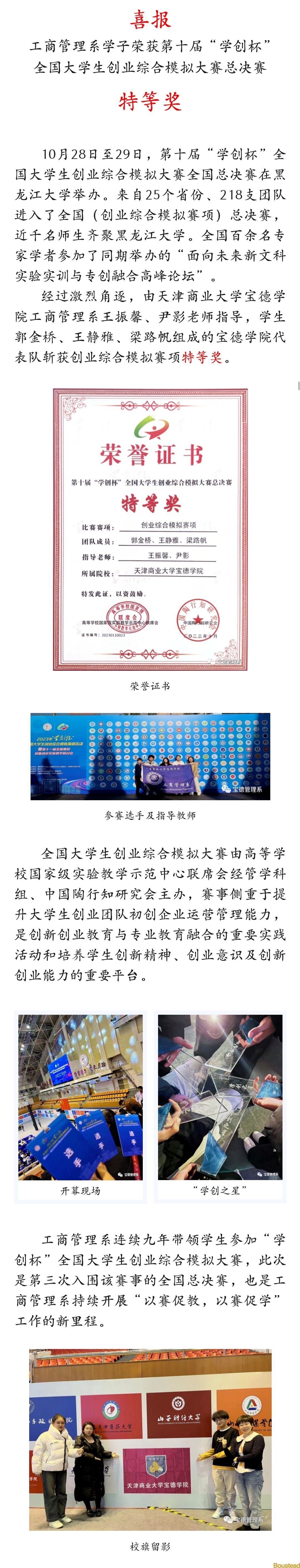 喜报!工商管理系学子荣获第十届“学创杯”全国大学生创业综合模拟大赛总决赛特等奖