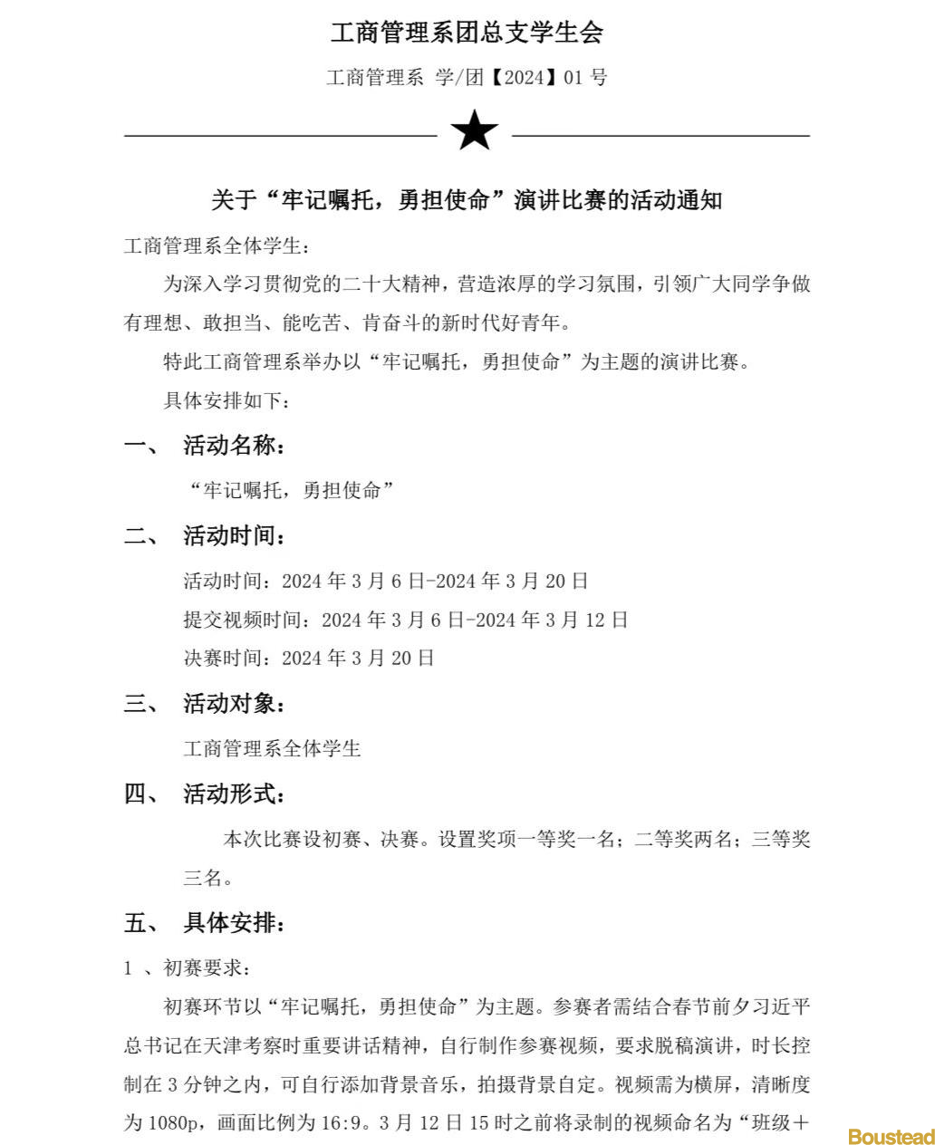 “牢记嘱托,勇担使命”演讲比赛活动通知