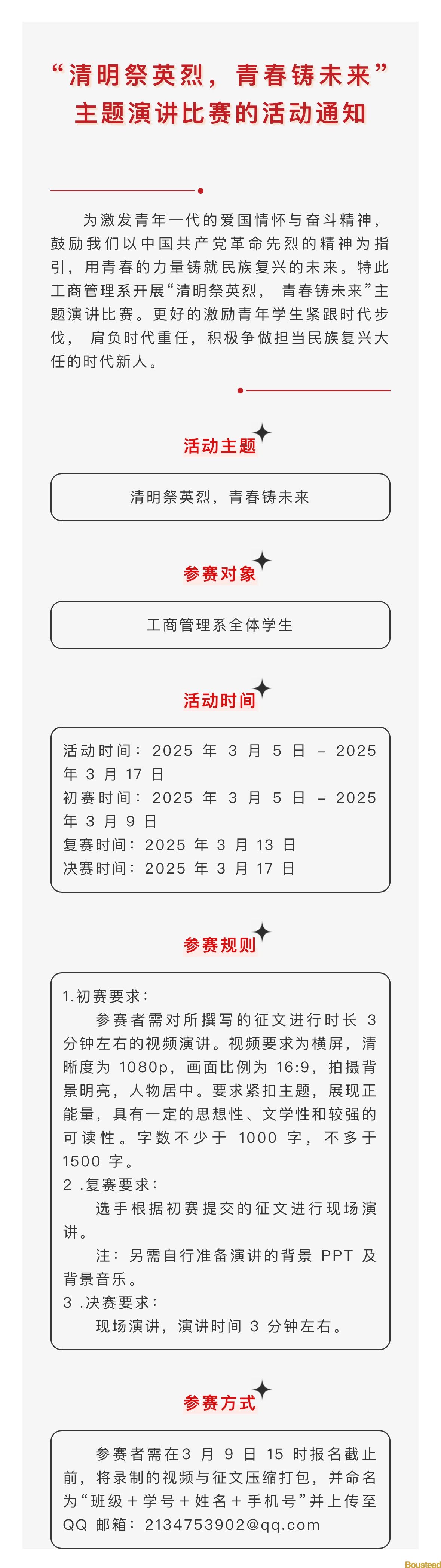 “清明祭英烈,青春铸未来”主题演讲比赛的活动通知