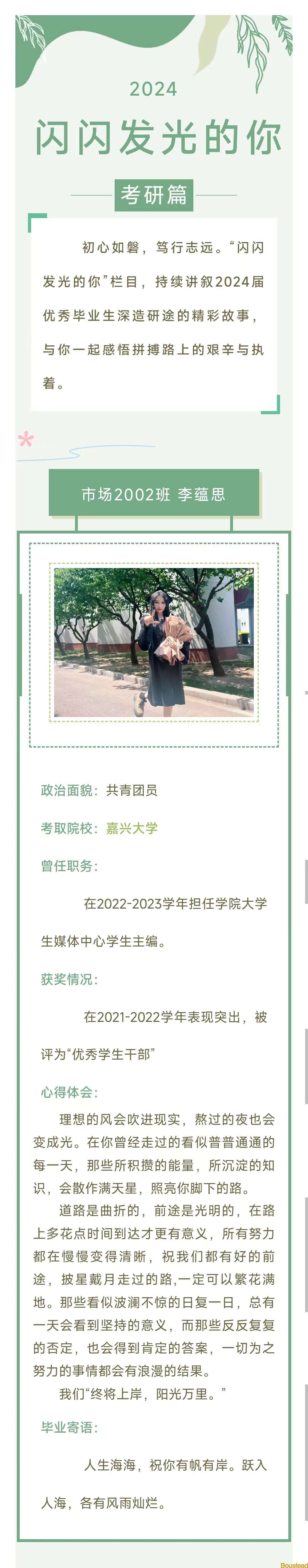 闪闪发光的你|工商管理系2024届优秀毕业生故事分享之考研篇——李蕴思