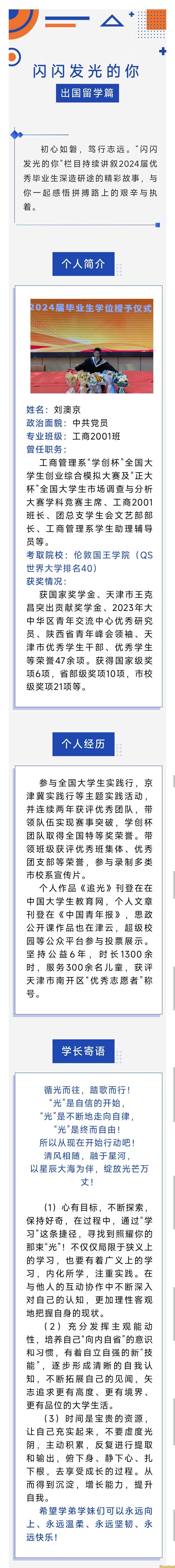 闪闪发光的你|工商管理系2024届优秀毕业生故事分享之出国留学篇——刘澳京