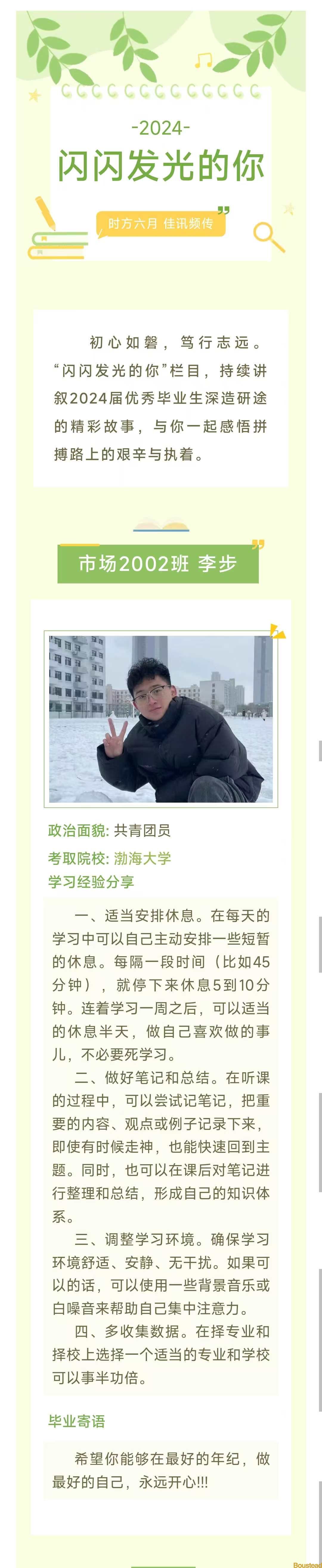 闪闪发光的你|工商管理系2024届优秀毕业生故事分享之考研篇——李步