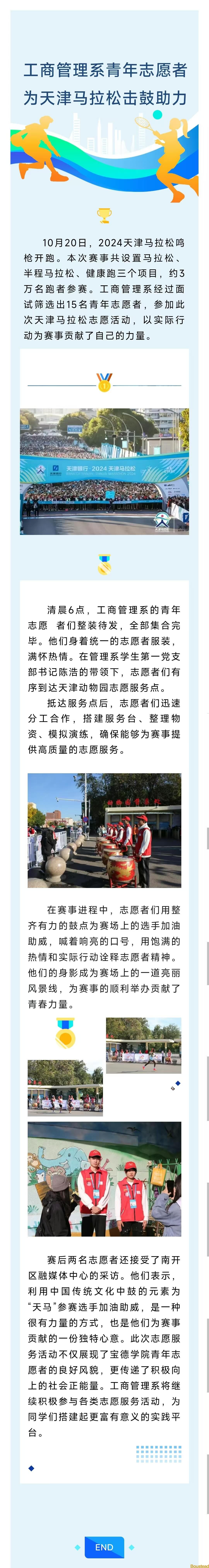 工商管理系青年志愿者为天津马拉松击鼓助力