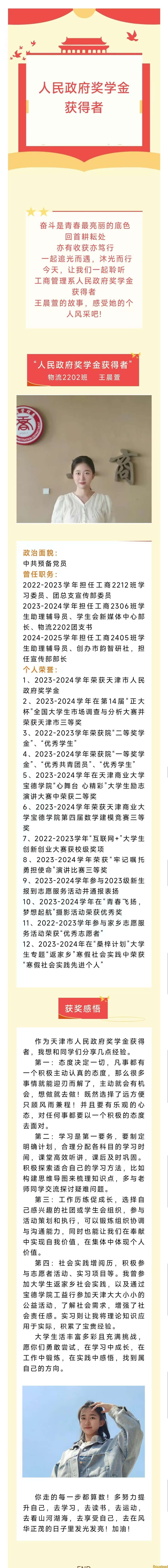 青春奋进 榜样力量 | 人民政府奖学金获得者:王晨萱