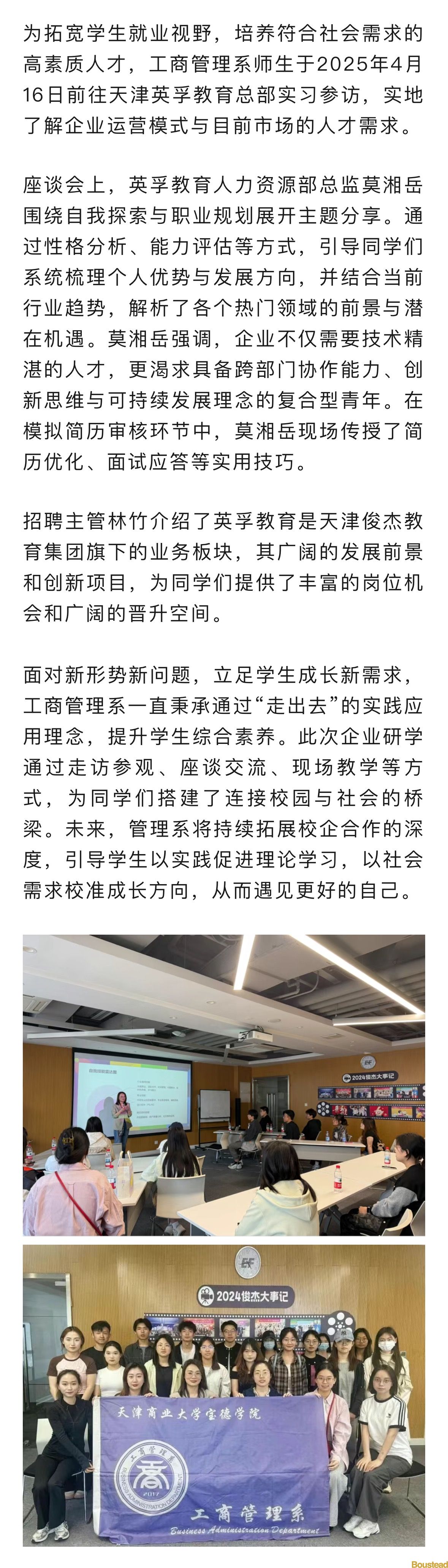 工商管理系师生赴天津英孚教育总部开展研学活动