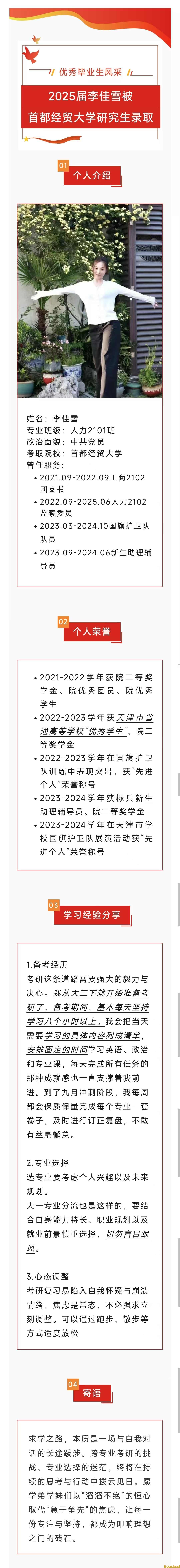 【优秀毕业生风采】2025届李佳雪被首都经贸大学研究生录取