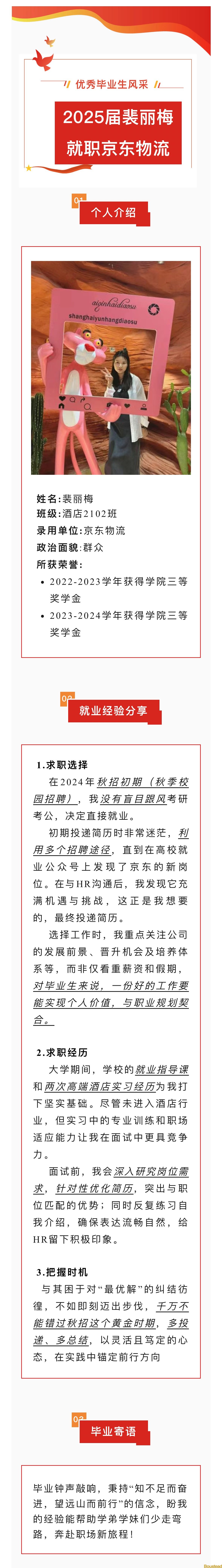 【优秀毕业生风采】2025届裴丽梅就职京东物流