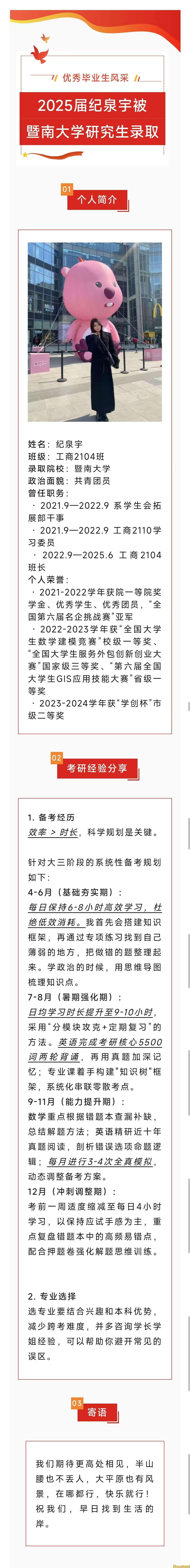 【优秀毕业生风采】2025届纪泉宇被暨南大学研究生录取