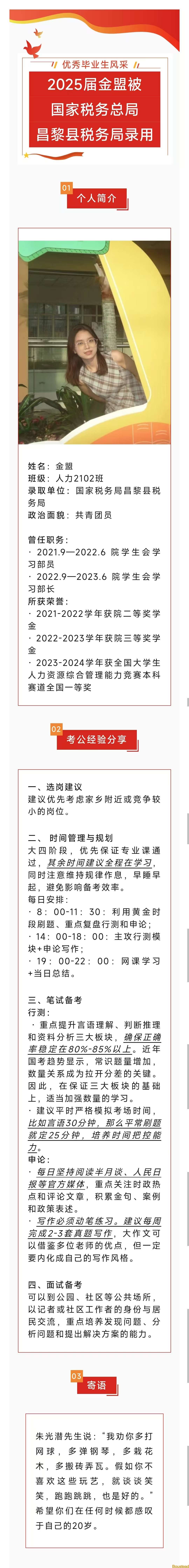 【优秀毕业生风采】2025届金盟被国家税务总局昌黎县税务局录用