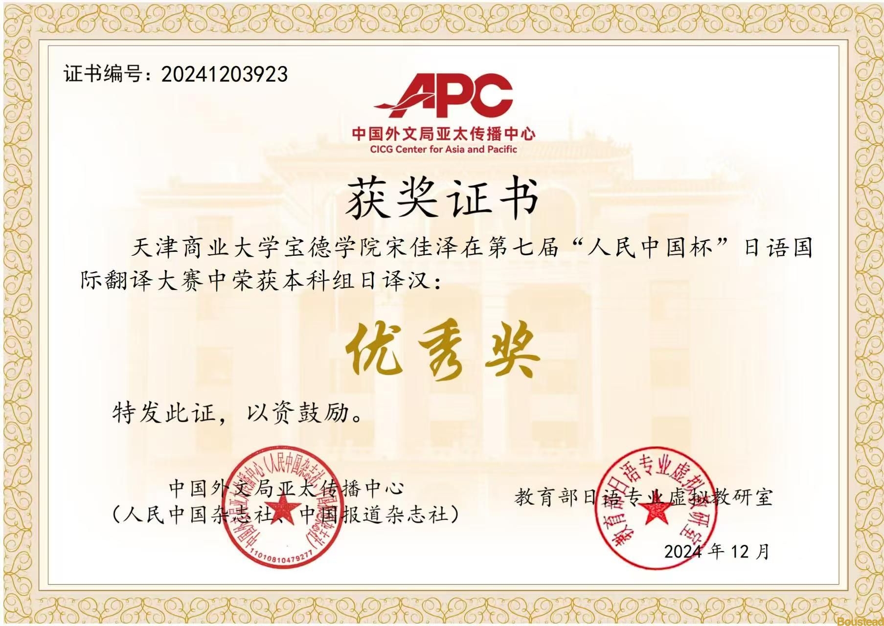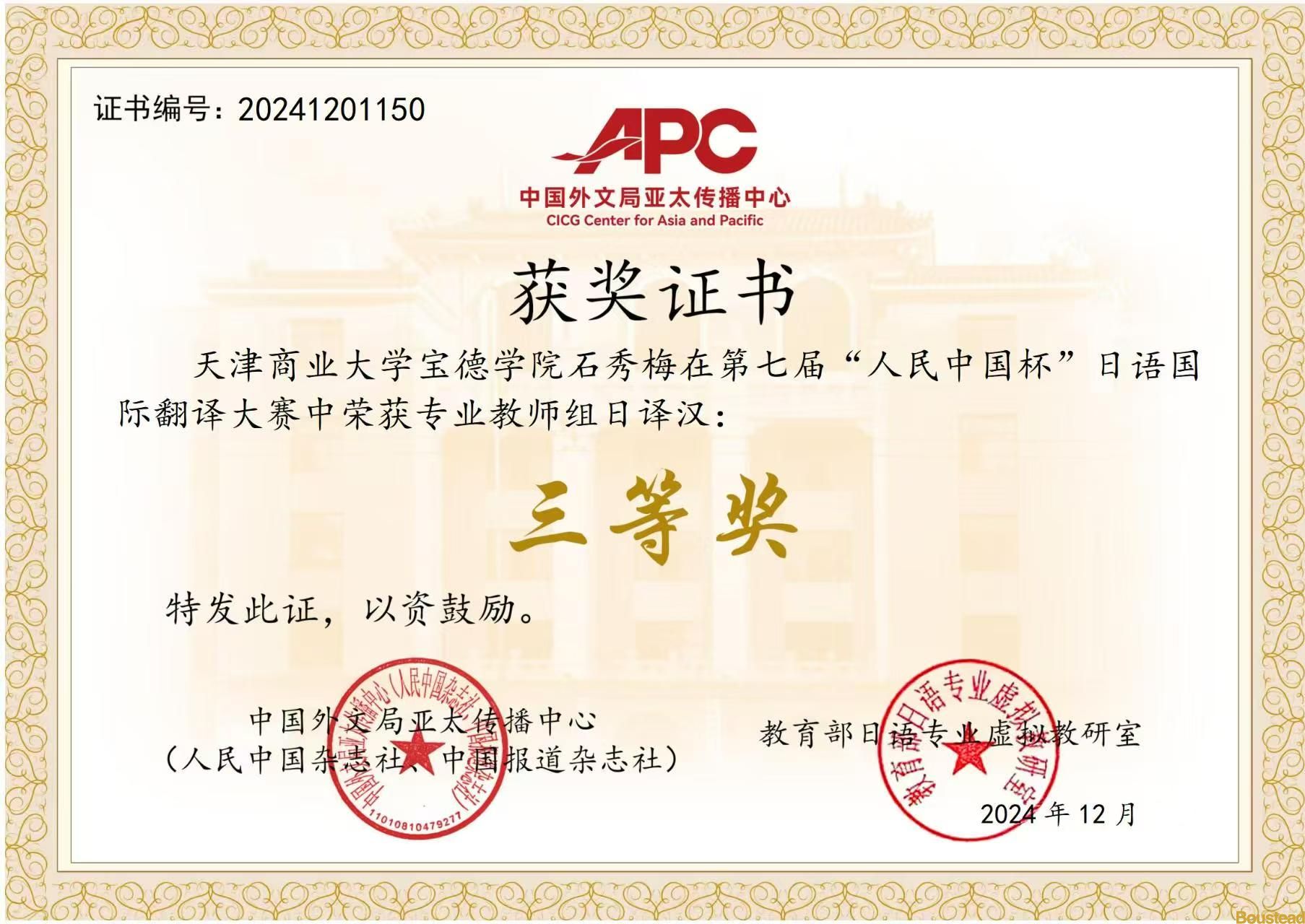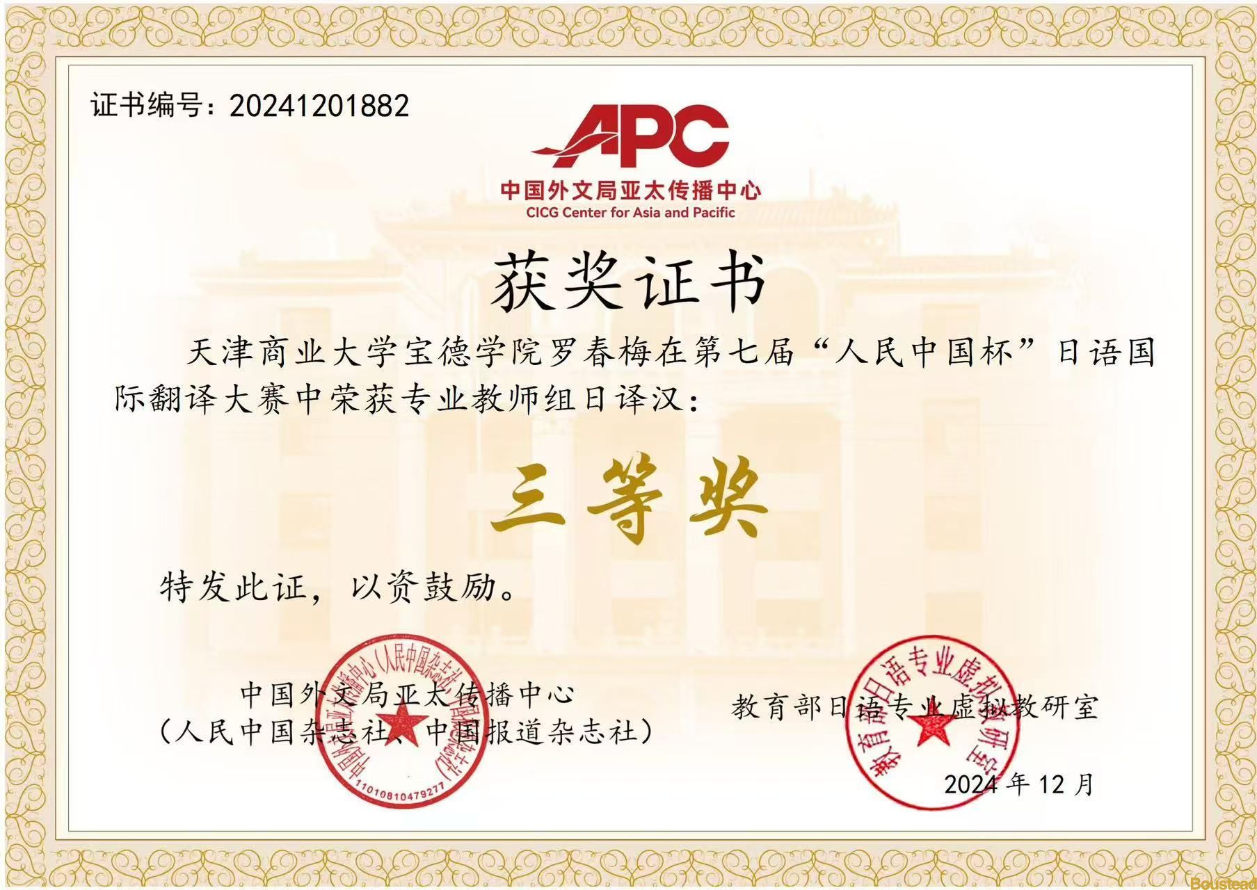 喜报!新葡的京在第七届“人民中国杯”日语国际翻译大赛中再创佳绩