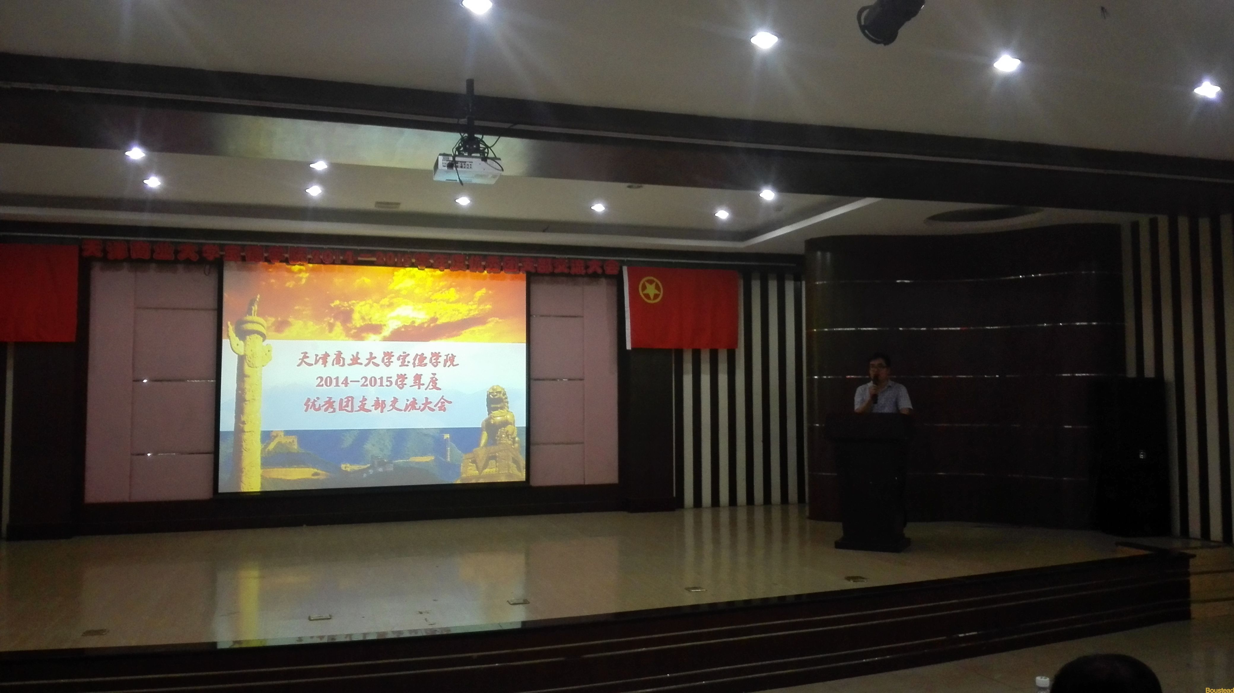 为纪念“五四”爱国运动,展现宝德学院各优秀团支部风采,增强集体凝聚力,院团委于2015年5月13日下午,在B座报告厅召开了优秀支部展示交流大会。经过层层选拔,共有八个院级优秀团支部参加本次交流大会。首先,八个团支部按照抽签顺序依次进行了风采展示。各个支部结合内容丰富的PPT慷慨激昂的演讲,不断赢得台下观众热烈的掌声,充分展现了各支部良好的精神风貌。最后,李红利书记宣布了最终排名。