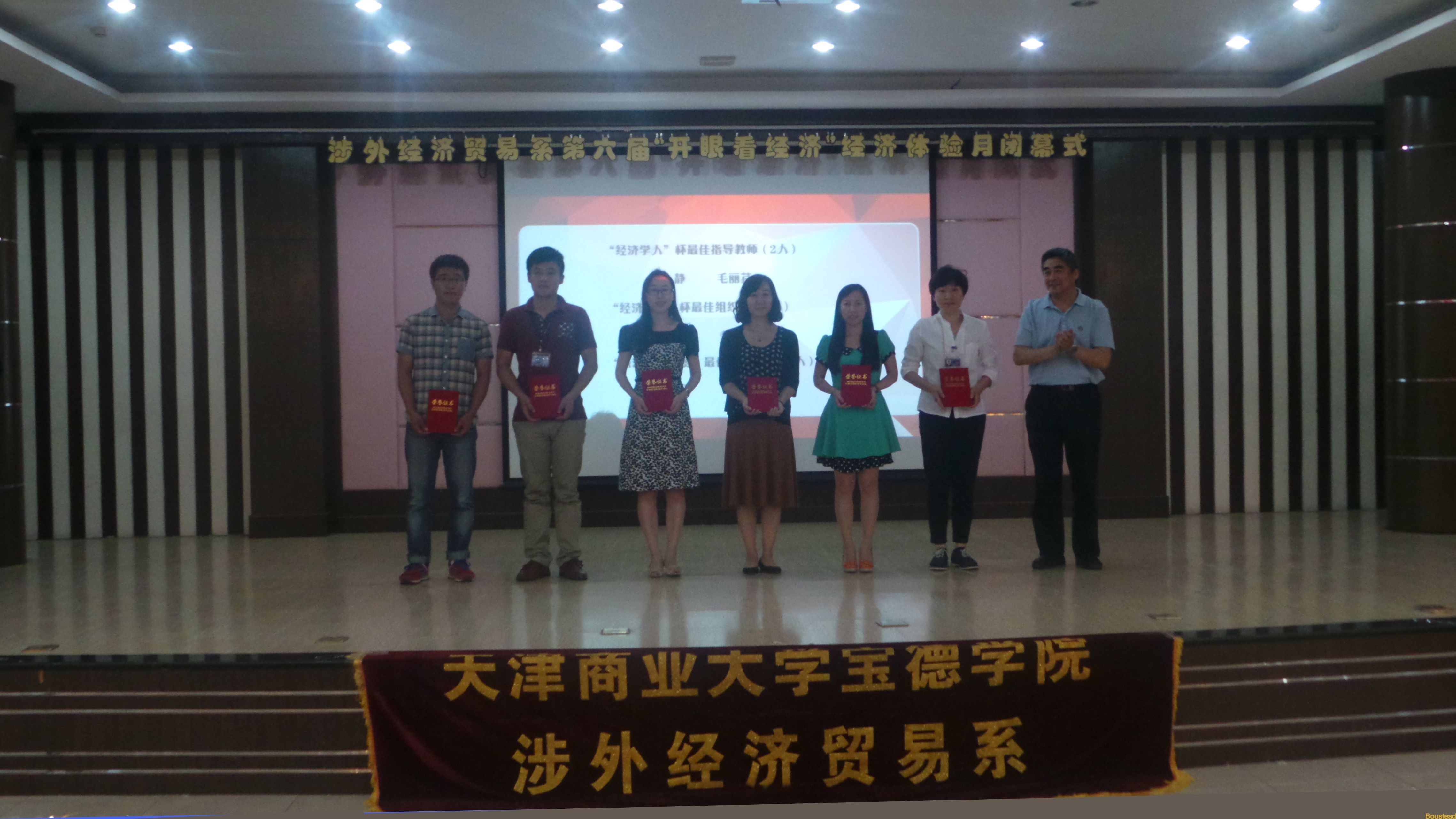 涉外经济贸易系第六届“开眼看经济”经济体验月闭幕式于2015年5月22日下午在B座报告厅隆重举行。张成副院长及各系部负责人莅临现场。随着一段精彩的赛程回顾,涉外经济贸易系孙森主任对本届体验月致辞,闭幕式正式拉开帷幕。本届经济体验月包括的比赛项目有:南开大学第八届全国大学生模拟投资交易大赛、第二届“大智慧”杯金融精英选拔赛、第一届“身未动,心已远”旅游风采大赛、第八届“经济学人”杯论文征文比赛、经济知识开口辩辩论赛。新葡的京主办方代表分别进行了各项赛程介绍,院领导及各系部负责人为获奖同学代表、指导教师颁奖,在祝贺他们的同时也希望各位获奖选手以更加昂扬的斗志投入到今后的学习生活中。最后,张成副院长对涉外经济贸易系第六届经济体验月各项赛事进行总结,闭幕式圆满结束。