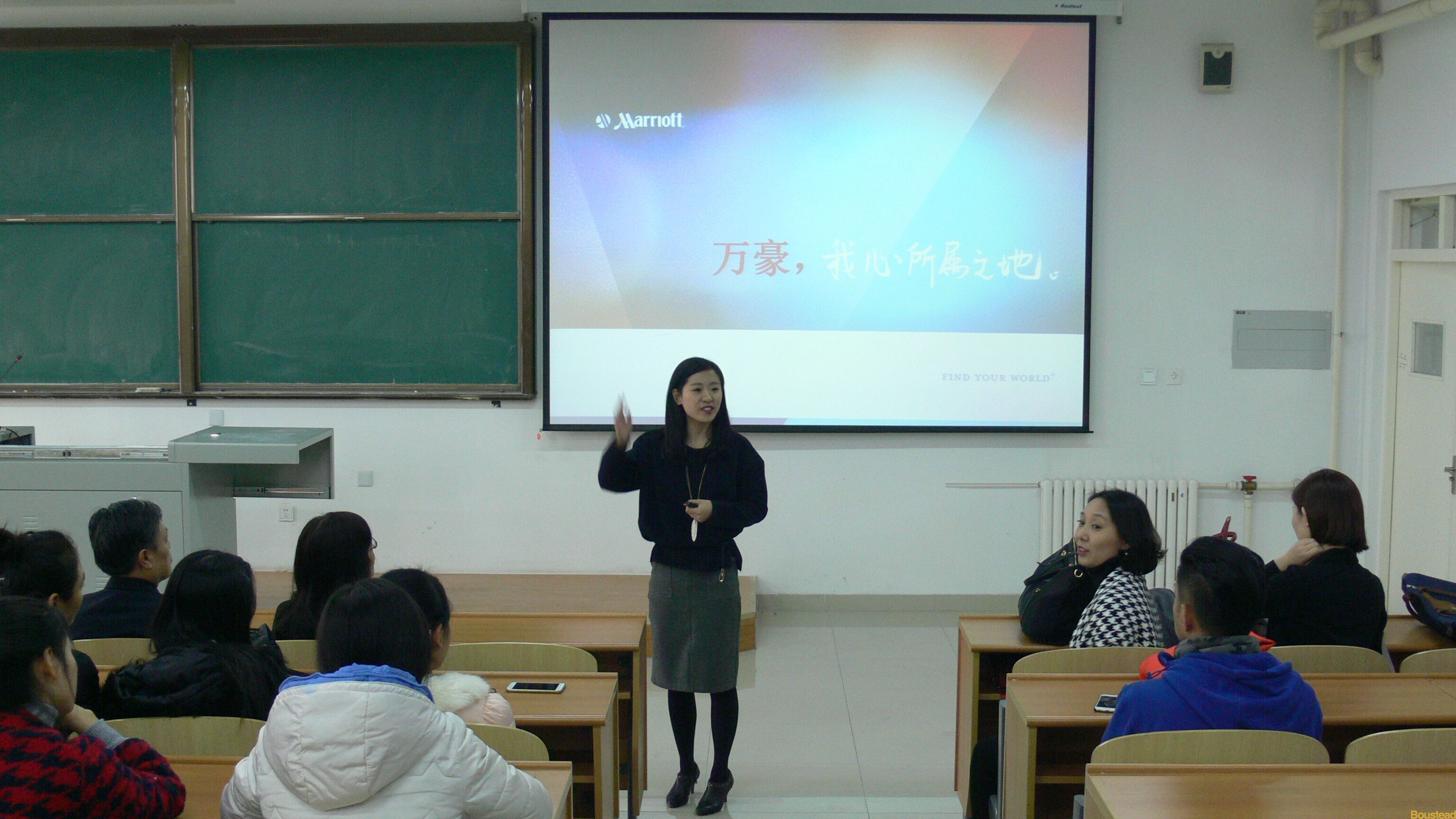 在签约进行的同时,万豪国际集团中国人才拓展经理Winni Zhang女士向新葡的京旅游管理专业学生介绍了合作办学项目和管理培训生项目的有关情况。