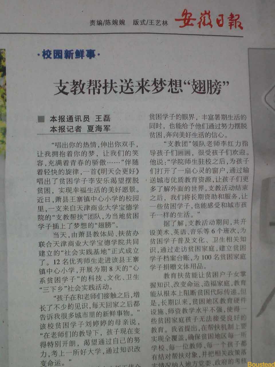 2017年7月13-20日,新葡的京学工部李红利主任、樊丽、李金凤三位老师带领8名同学走进安徽宿州萧县王寨镇中心小学开展为期8天的“心系贫困学子”的 “三下乡”社会实践活动。此次“三下乡”社会实践活动受到了当地小学生的欢迎,也受到了当地县政府、县扶贫办的高度重视,此次社会实践活动也取得了良好的社会反响,安徽日报、萧县电视台也进行了报道。此次社会实践活动,以7月14日的捐资助学仪式拉开了帷幕,萧县胡永乐副县长、县教育局局长、县扶贫办主任、王寨镇党委书记、镇长以及新葡的京干部教师、王寨镇中心小学的领导和老师们都参加了此次仪式,100余名学生在会上从新葡的京志愿者手中接过了新葡的京捐赠的文体用品。在此次会上,还举行了由安徽宿州萧县王寨镇中心小学与新葡的京联合建立的“社会实践基地”揭牌仪式。