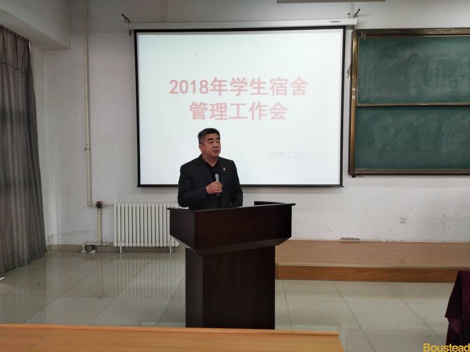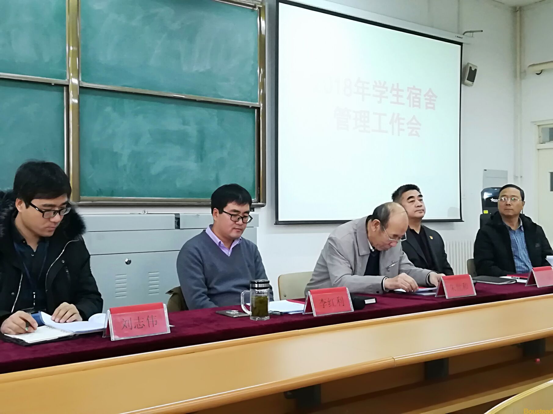 2018年1月20日,学工部组织召开了2018年学生宿舍管理工作会议,学院党委书记、院长朱世和,副院长张成,学工部、保卫部、信息技术中心、各教学单位负责人,辅导员,宿管中心全体宿管老师,以及宏达物业公司的负责人和宿管员参加了会议。