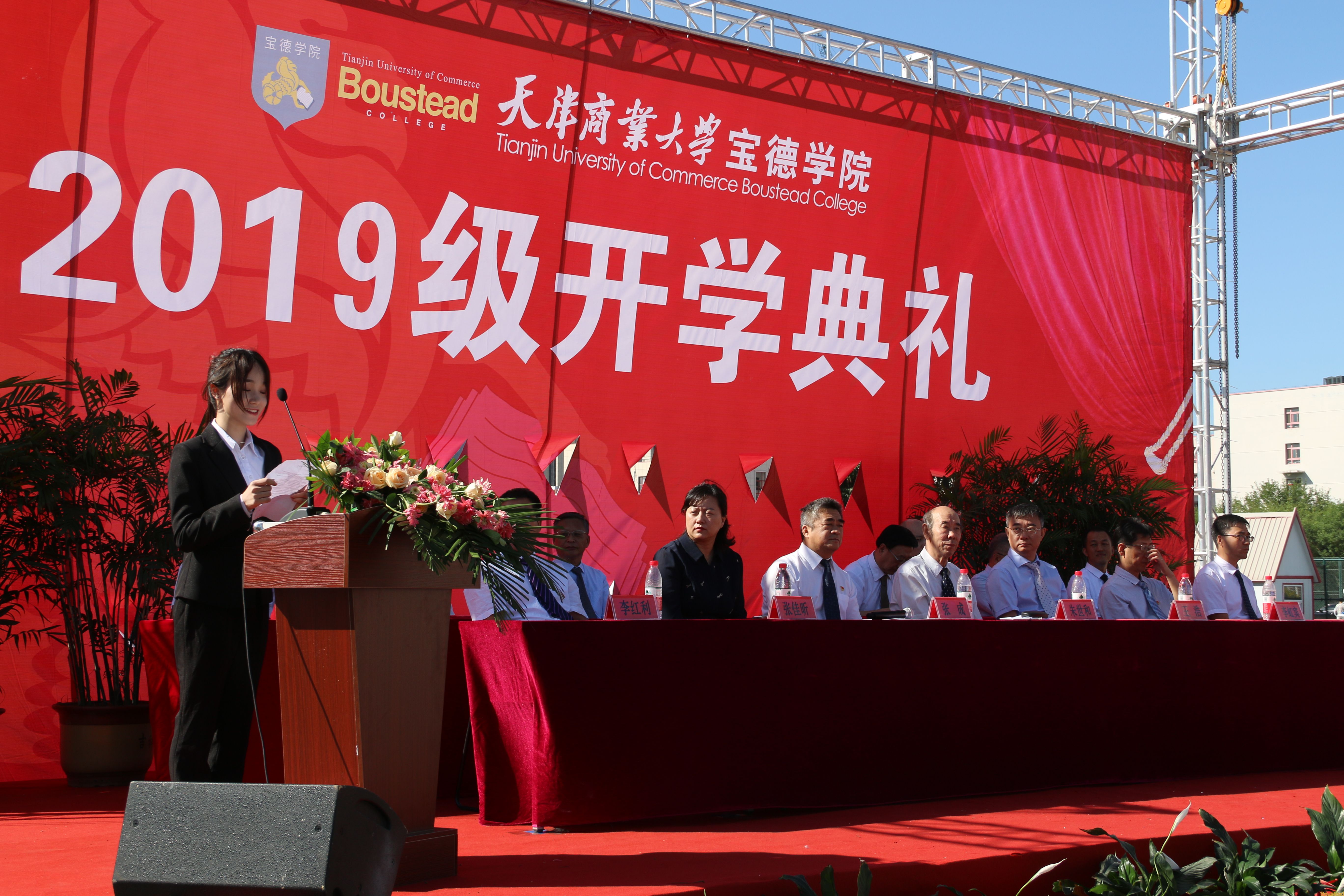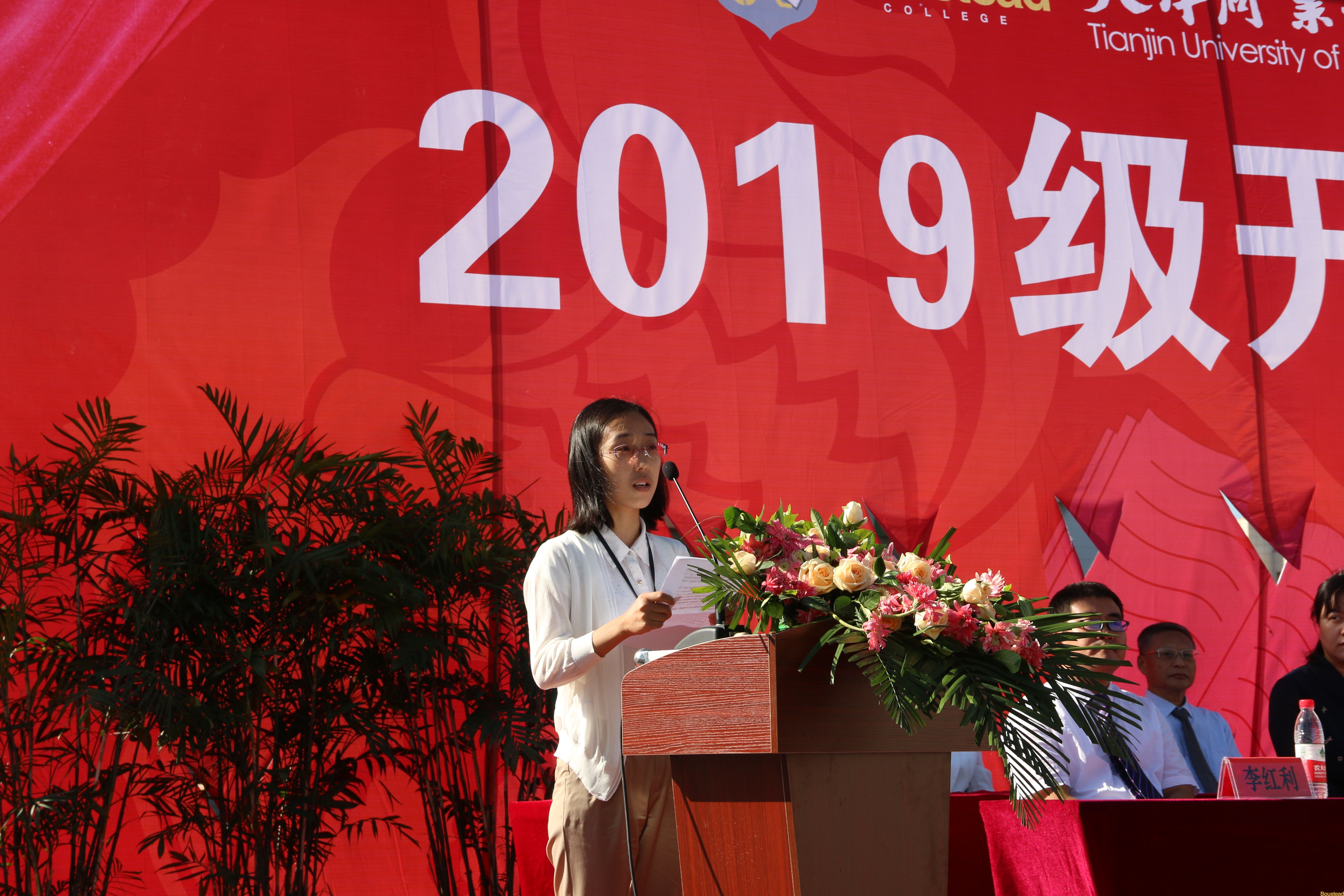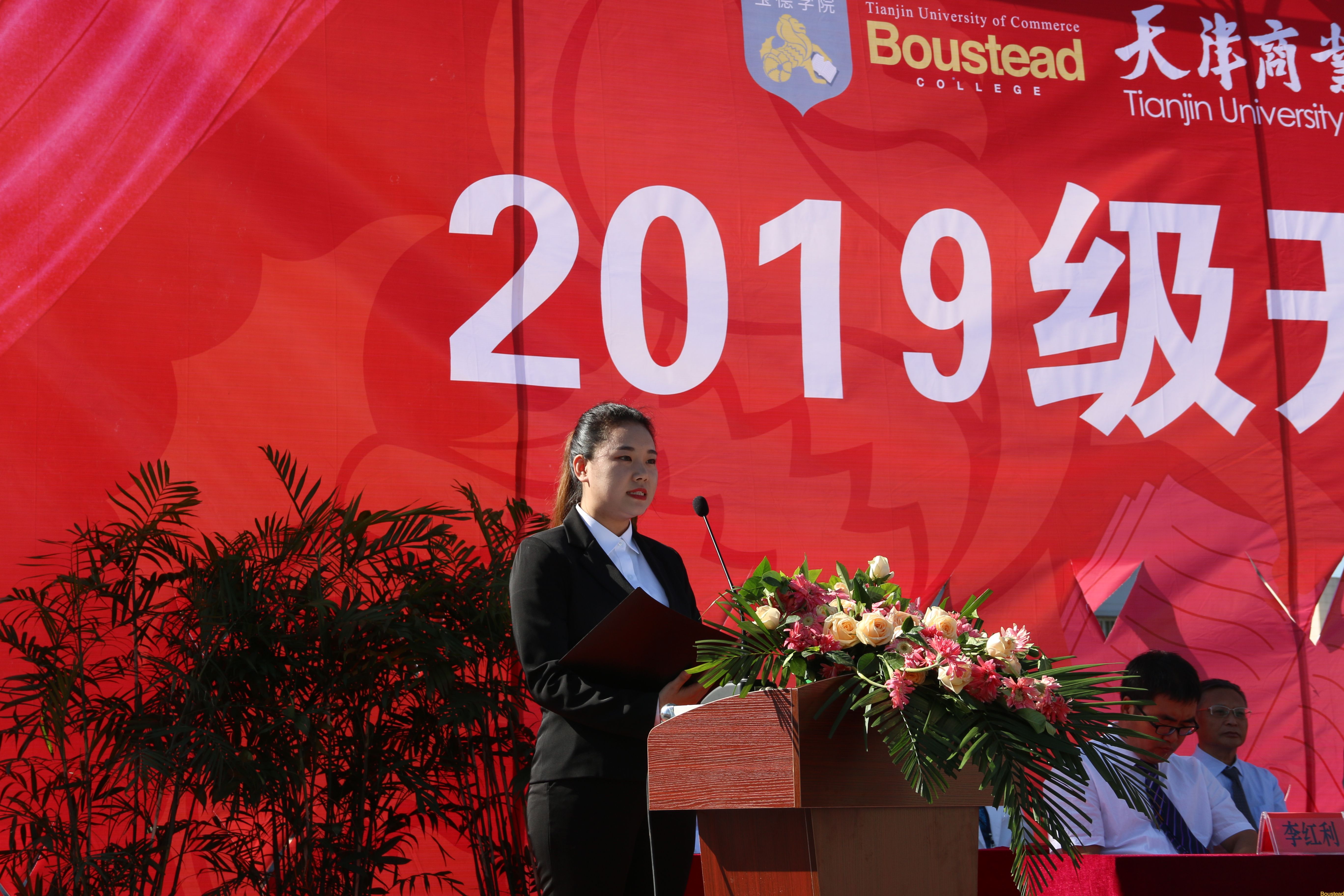 开学典礼在雄壮的国歌声中拉开了序幕。教师代表、校友代表、在校生代表、学生社团联合会负责人、新生代表先后发言。会计学系教师葛静代表全体教师欢迎新同学的到来,希望同学们心怀包容和感恩之心,砥砺前行;电子商务专业0501班校友赖毅,分享了自己在学习和工作中的奋斗故事,鼓励新同学拼搏奋斗,不负青春;在校生代表工商管理系人力资源1702班的王玮同学,用亲身感悟和经历,建议新同学注重培养兴趣爱好,提升自己综合能力;学生社团联合会负责人吕尤向大家介绍了院学生会与社团联合会的基本情况,号召新同学寻找志同道合的伙伴,体验团队精神的可贵;新生代表影视与舞蹈系表演1902班的杨子卉同学,表达了对未来校园生活的憧憬和期许。
