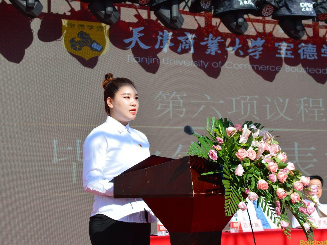 经济贸易系毕业生吕尤同学代表2021届毕业生发言,深切表达了对母校及老师们的感激之情和对未来生活的美好憧憬。