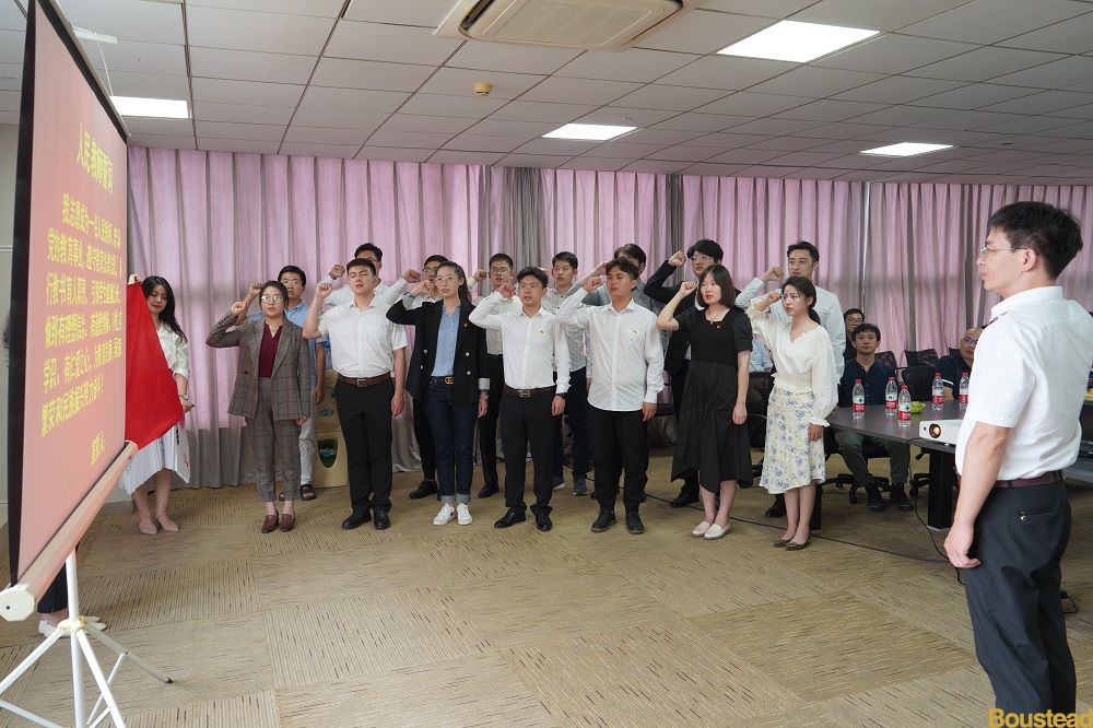 最后,工商管理系刘翔副主任带领20名新入职教师举起右手,进行了庄严宣誓。掷地有声的人民教师誓词,紧握高举的右拳,是每一位新教师的自我期许,更是对教育事业的庄严承诺。相信他们在老教师们的带领下会快速融入宝德学院这个大家庭,在各自的工作岗位上辛勤耕耘、静待花开,与全体教职工一道为学院教育教学高质量发展贡献出自己的力量。