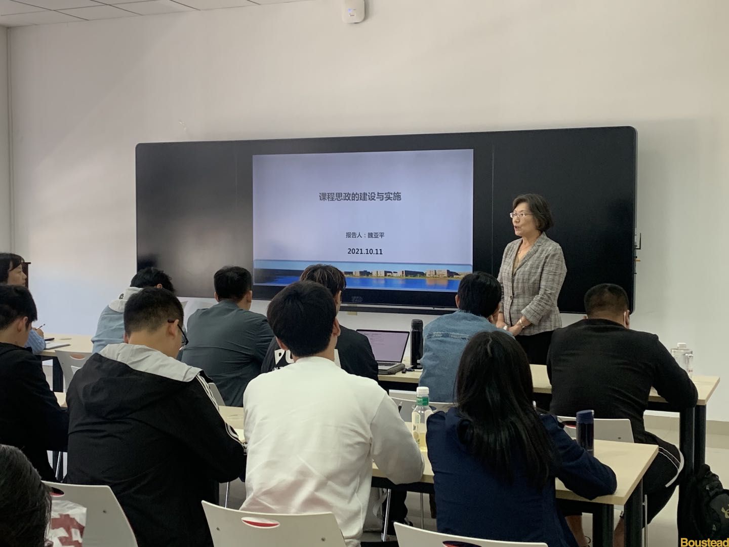 会计学系魏亚平教授以“课程思政的建设与实施”为主题,从思政如何分解为主体、部分再到元素的三个方面讲解了融入课堂的方式与方法。把难以构想的概念加以举例,指导新教师将理念性的知识运用于实际工作中,让“思政进课堂”的理念穿行在我们的教学实践中,指引新教师理论联系实际把工作做实做好。工商管理系刘翔副主任以“如何做一个优秀的大学教师”为主题,结合自身从教经历和教师职业要求,以幽默生动的语言,从五个方面,讲解了面对移动物联网时代对教学的冲击,应如何做一个优秀的大学教师,从思维高度、思维宽度和思维深度三个方面不断提高思维能力,勇于打破惯性思维,克服经验主义。参加培训的教师纷纷表示深受启发,期待有更多机会聆听老教师的课程。