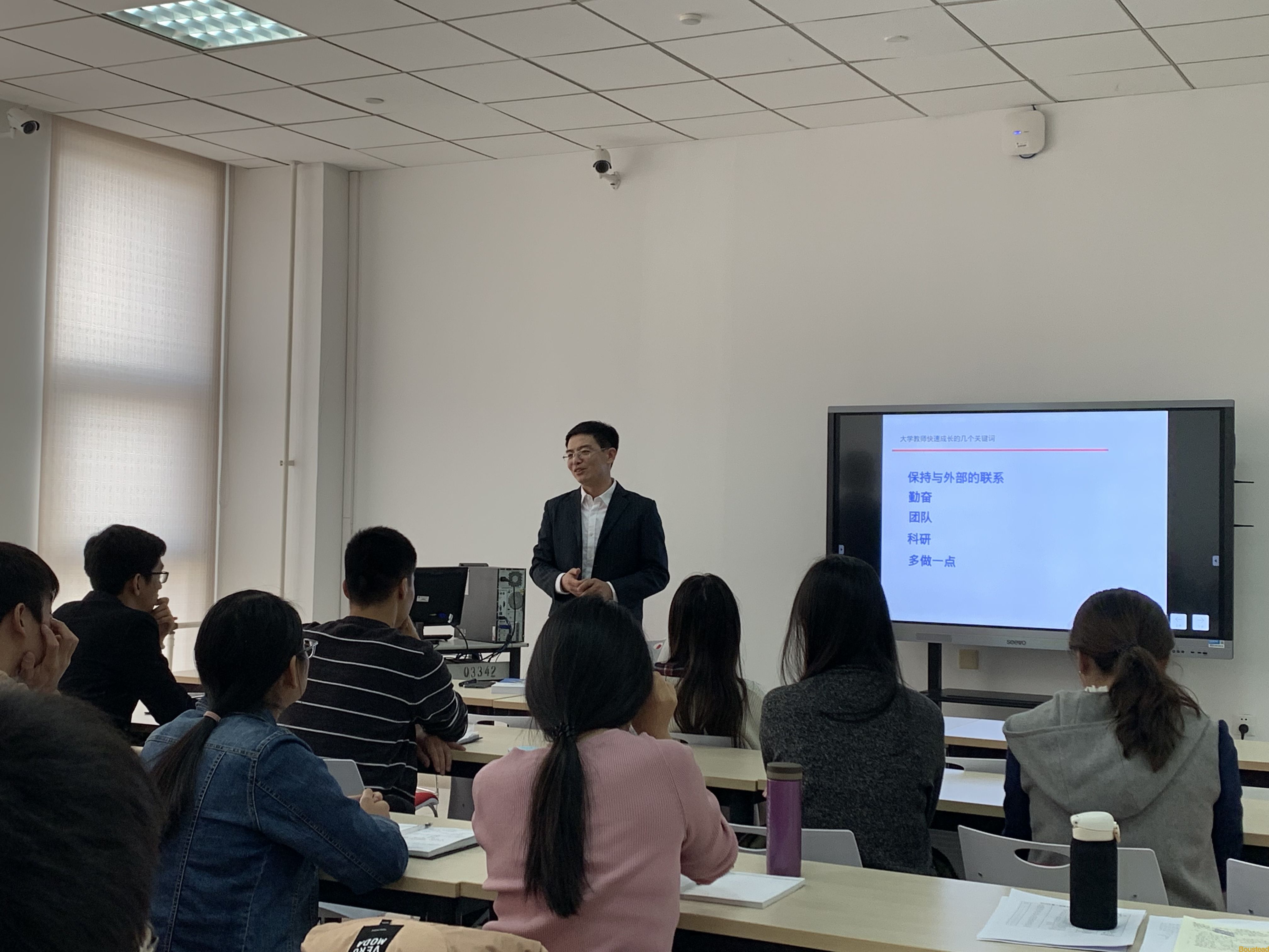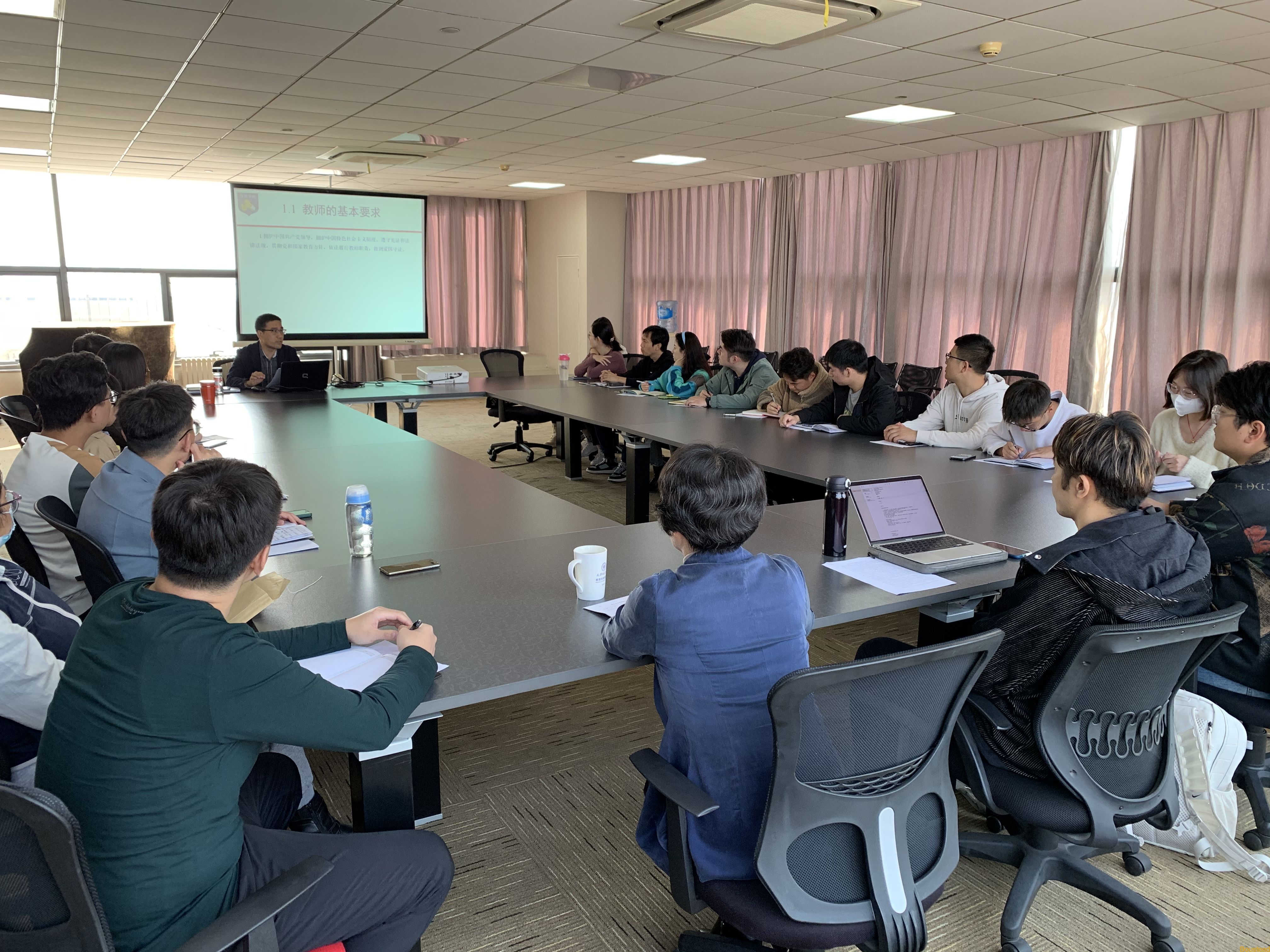 张成副院长做了以“提高政治素养、做合格的人民教师”为主题的报告,希望新教师加强政治学习,树立政治理想,提高自身修养,与党同德同心,传达正能量,维护好课程的声誉,投身教育事业。