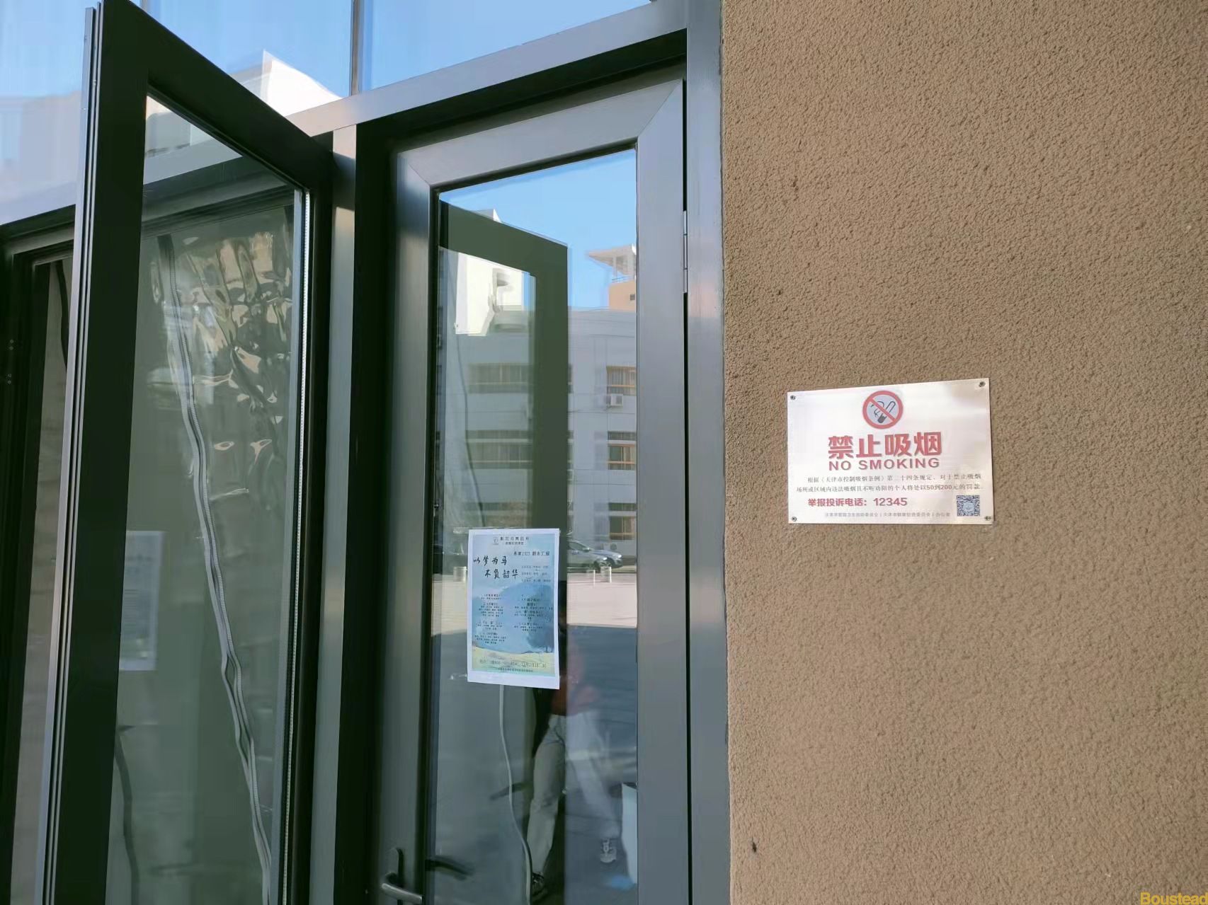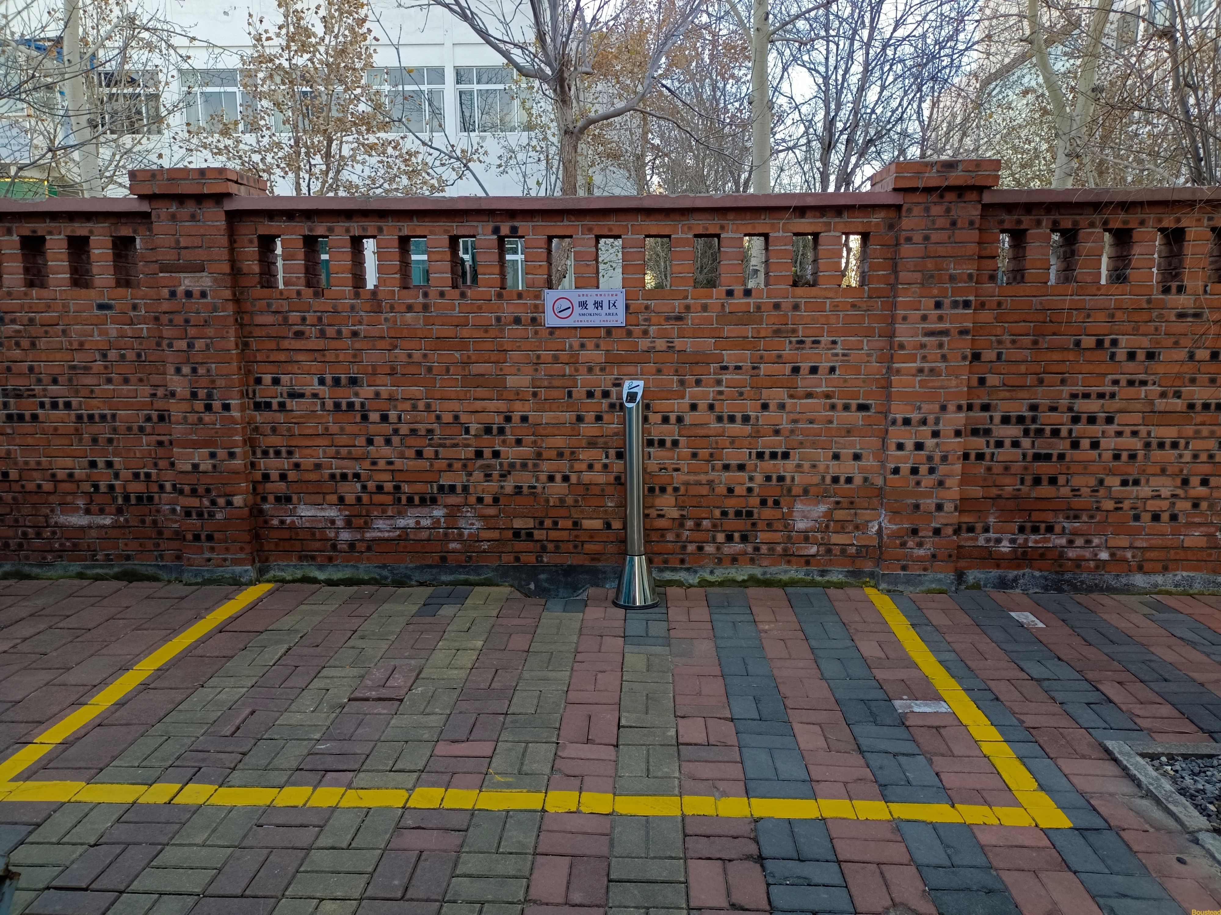 同时,在主楼北侧、F座南侧、D座西侧划定三处室外吸烟区。