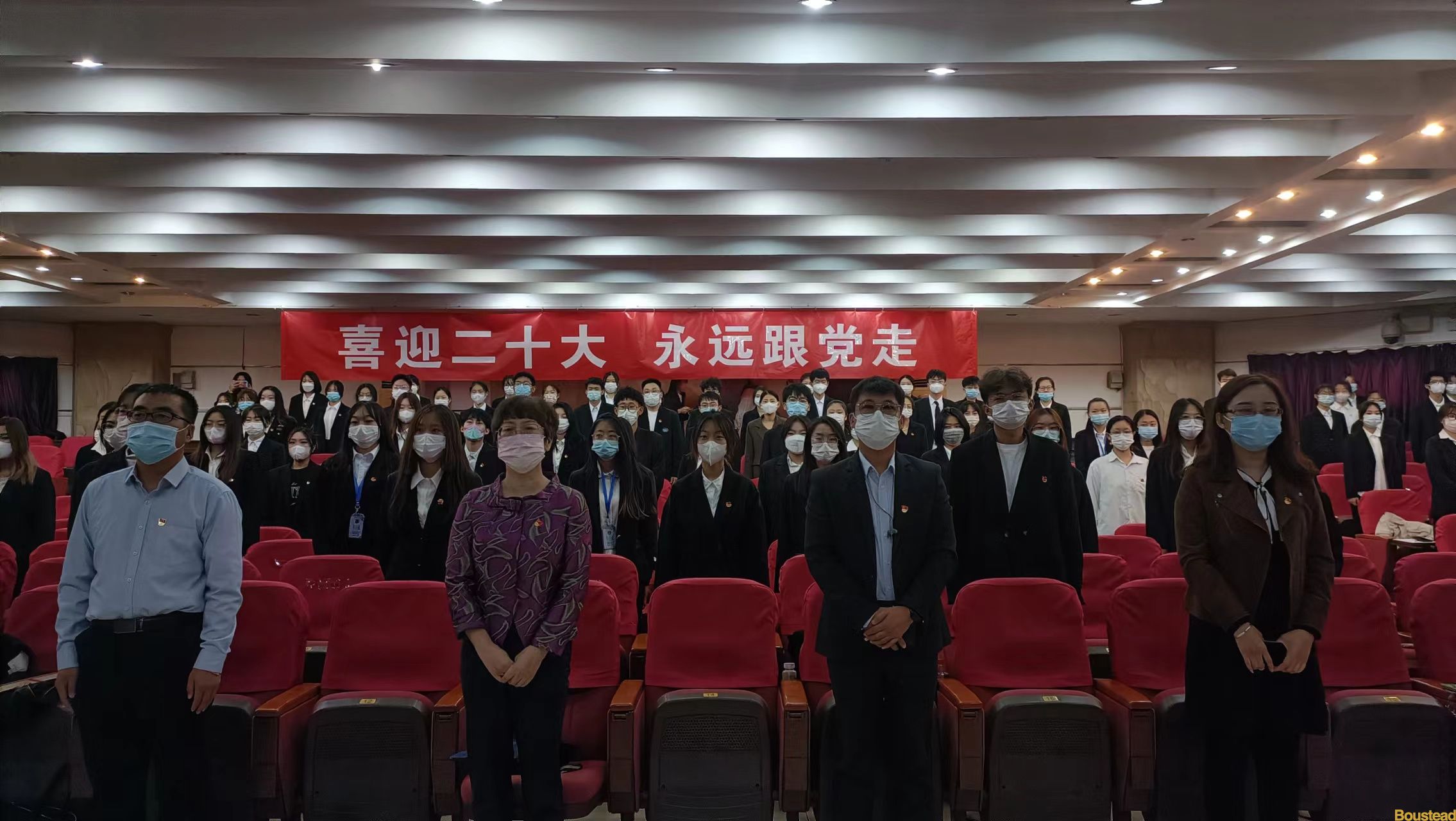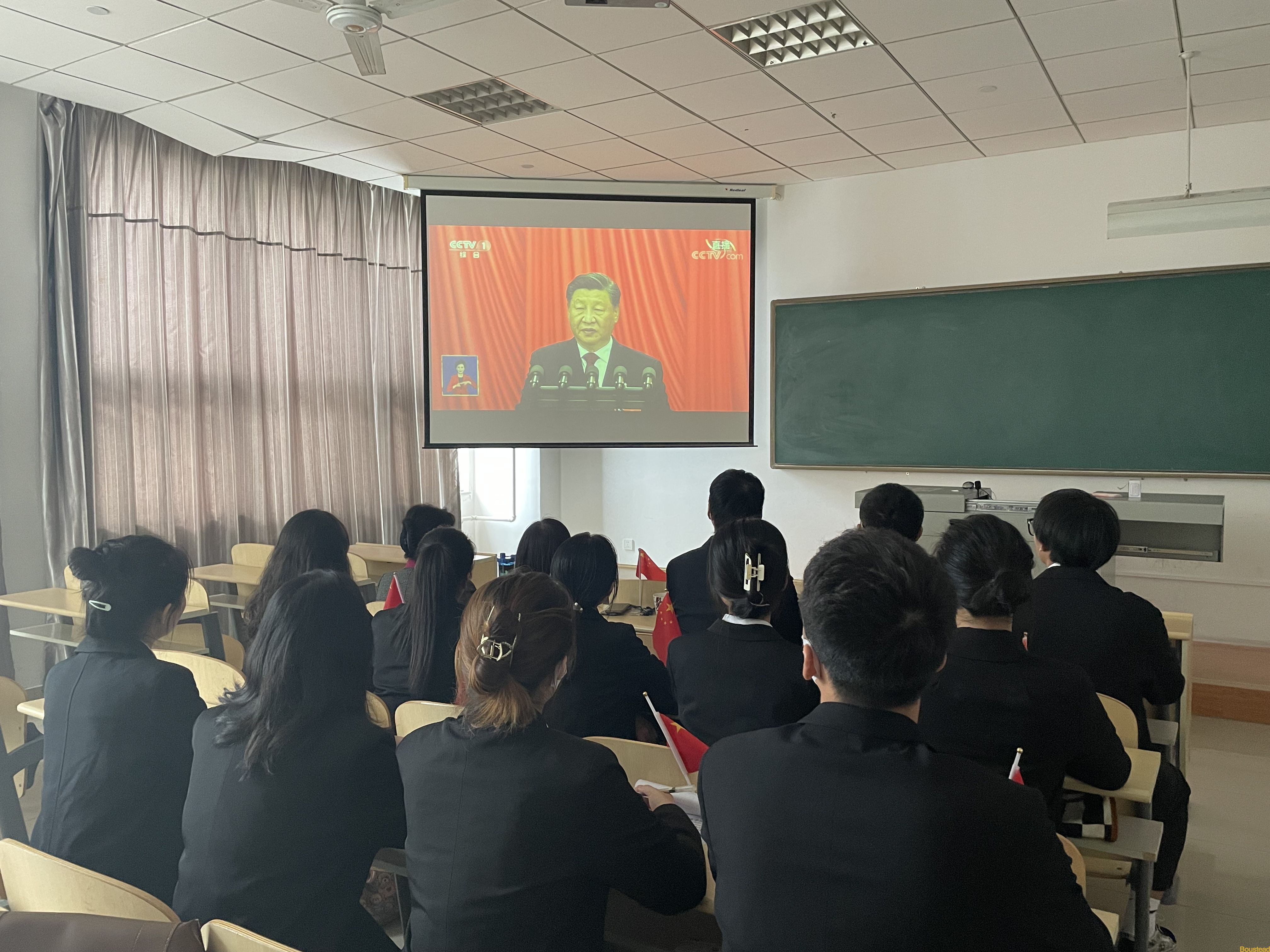 10月16日上午,中国共产党第二十次全国代表大会在北京人民大会堂开幕。习近平代表第十九届中央委员会向大会作报告。党的二十大是在全党全国各族人民迈上全面建设社会主义现代化国家新征程、向第二个百年奋斗目标进军的关键时刻召开的一次十分重要的大会。学院党委分别组织领导班子成员、党委委员、党员教师、学生骨干在校集中收看了大会实况直播。市教委督查专员、规划处副处长阮澎涛同志在新葡的京学术报告厅与同学们一起收看大会直播。结合疫情防控要求,其他师生均通过网络分散收听收看了大会直播,及时准确了解大会精神。