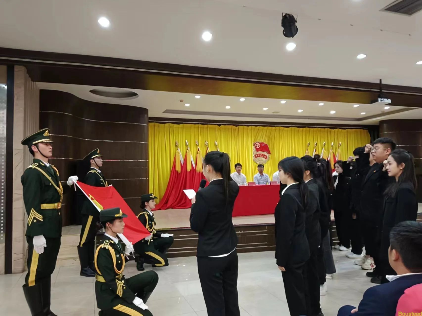 大会在庄严的国歌声中拉开序幕。首先进行新发展团员入团仪式,新发展团员向团旗庄严宣誓。随后学院党委委员、团委书记李红利宣读了《关于表彰2022-2023学年学院先进集体及优秀个人的决定》。会上,学院领导为先进集体和个人现场颁奖,大会现场气氛热烈、掌声不断。