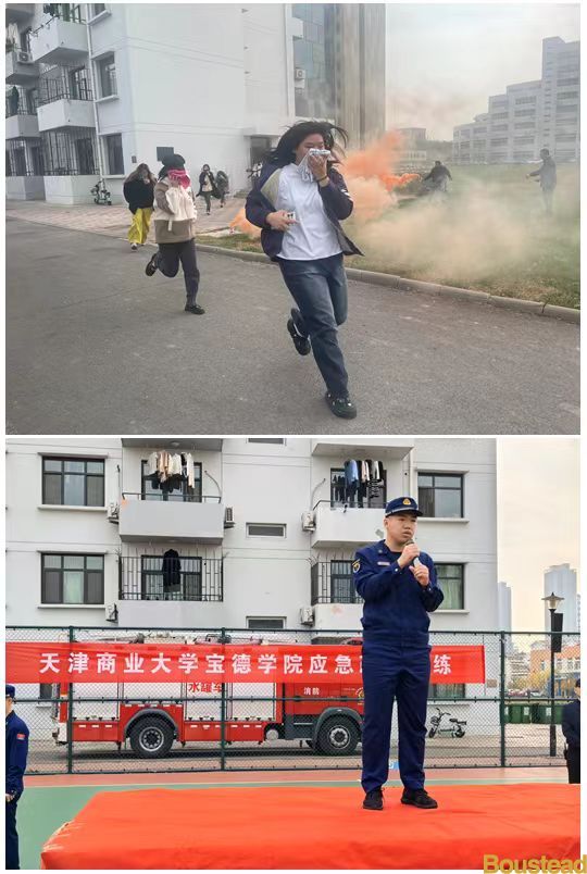 12时20分,随着王浩宣布演练开始,各宿舍楼内的学生在宿舍管理员、安保人员、辅导员的指挥组织下,快速有序疏散至操场,全程用时5分钟。高新区海泰大道消防救援站指战员对学生疏散过程的表现进行了讲评,并进行了火情处置演示。
