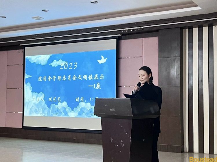 今年共有来自各系的12间宿舍参与评比。参评宿舍代表通过PPT展示、现场演讲的方式,从成员简介、宿舍生活、宿舍荣誉、未来展望等方面向评委老师们汇报了她们宿舍这一学年的经历和感想,展现了新时代大学生的精神风貌,得到了现场评委的肯定。综合前期各宿舍的卫生成绩与现场展示得分,本次评比表彰大会最终评选出6间宿舍分别获“星级宿舍一等奖”“星级宿舍二等奖”“星级宿舍三等奖”。文明楼I座学生代表向大家展示了I座的卫生安全文化风貌,促进全院宿舍楼互相学习,共同进步。