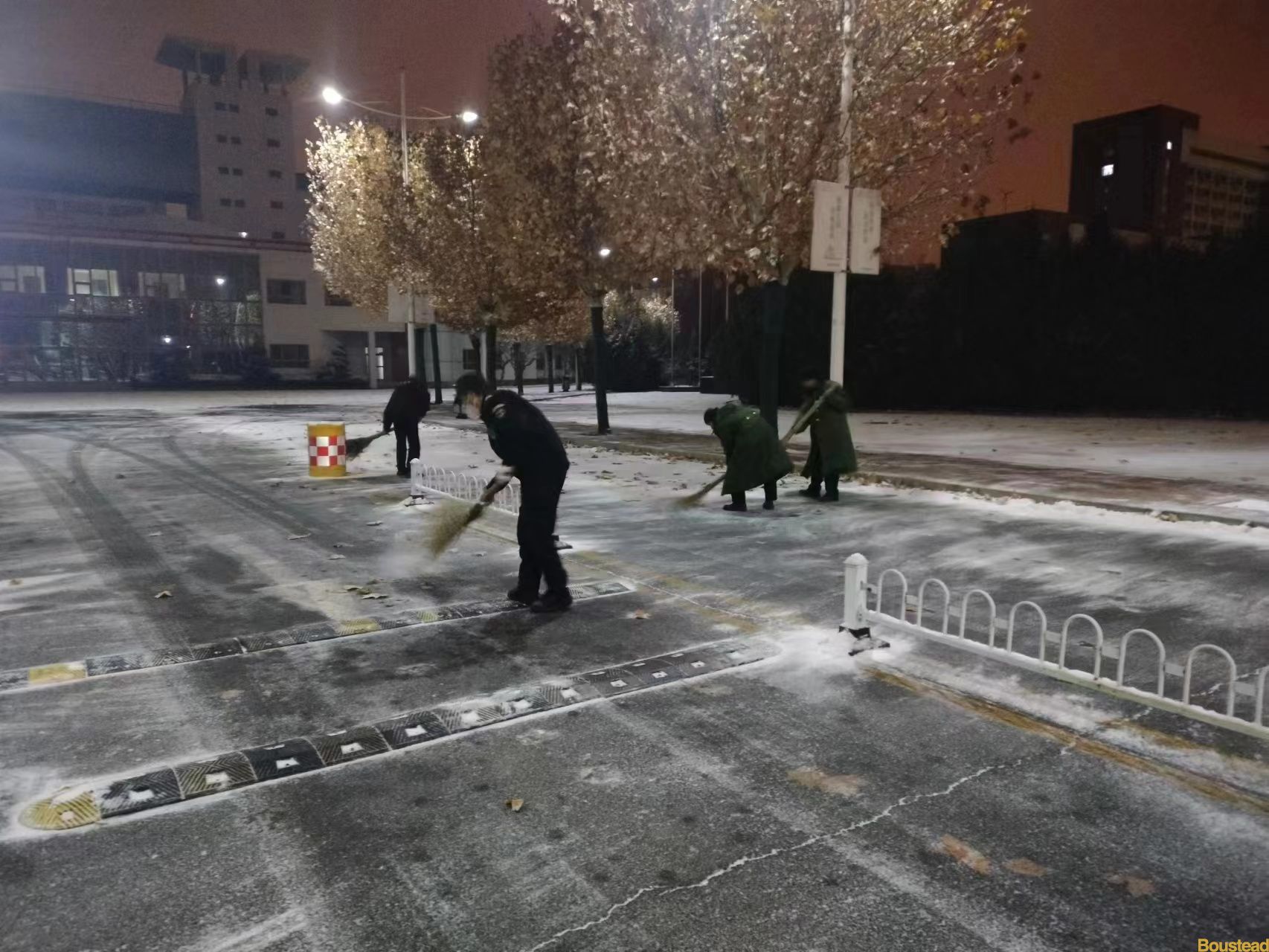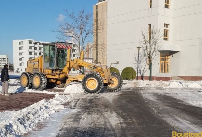 12月14日中午,精灵般的雪花在寒风中炫舞,纷扬飘落,为寒冷的校园披上了一层平和安详的厚厚银装。持续两天的强降雪天气,使得道路湿滑,为大家的出行带来了困扰。早在入冬之初,后勤保障部就着手储备了扫帚、铁锹、融雪剂、防滑地毯等清雪工具和物资。维修师傅们更是奇思妙想,利用废料焊接出清雪神器——“大扒犁”,解放人力,提高效率。通过前期精心准备,为这场攻坚战打好了坚实的基础。