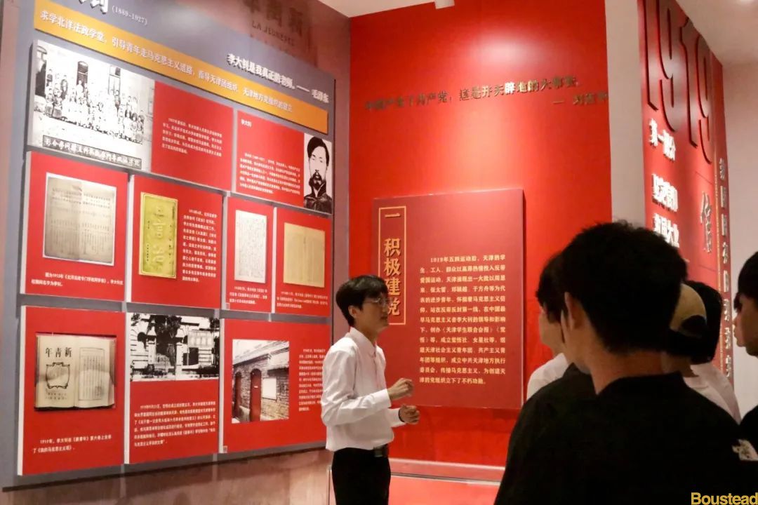 在天津工业大学的红色文化教育基地。这里陈列着许多珍贵的历史文物,展示了中国共产党的先驱们在天津的光辉历程。讲解员详细生动地讲解,使同学们了解了中国共产党的前辈们为了民族独立和人民幸福而在天津这片热土上的奋斗的艰辛历程。通过参观,同学们深受教育和鼓舞,对独立、自强不息的精神有了更深刻地认识和体会。纺织科学与工程学院在纺织行业的科研创新和人才培养方面具有举足轻重的地位,老师详细介绍了纺织行业的最新技术和发展趋势,带领同学们参观了学院实验室,亲身感受到了纺织工艺和设备的先进性。