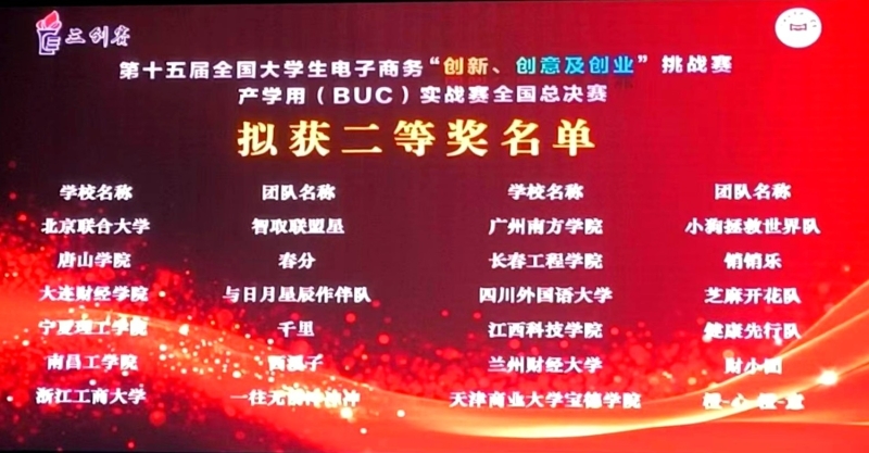 自2024年11月启动备赛以来,学院高度重视赛事组织与指导工作,经济贸易系教师纪威、张玉欣带领“橙心橙意”团队积极参赛,历经校赛、省赛(天津赛区)层层选拔,最终晋级全国总决赛。在2025年7月19日至21日于江西应用科技学院举行的产学用(BUC)实战赛中,“橙心橙意”团队凭借扎实的专业素养、创新的项目设计和出色的实战成果,在来自全国29个省(直辖市)高校的92支代表队中脱颖而出,荣获全国总决赛二等奖。
