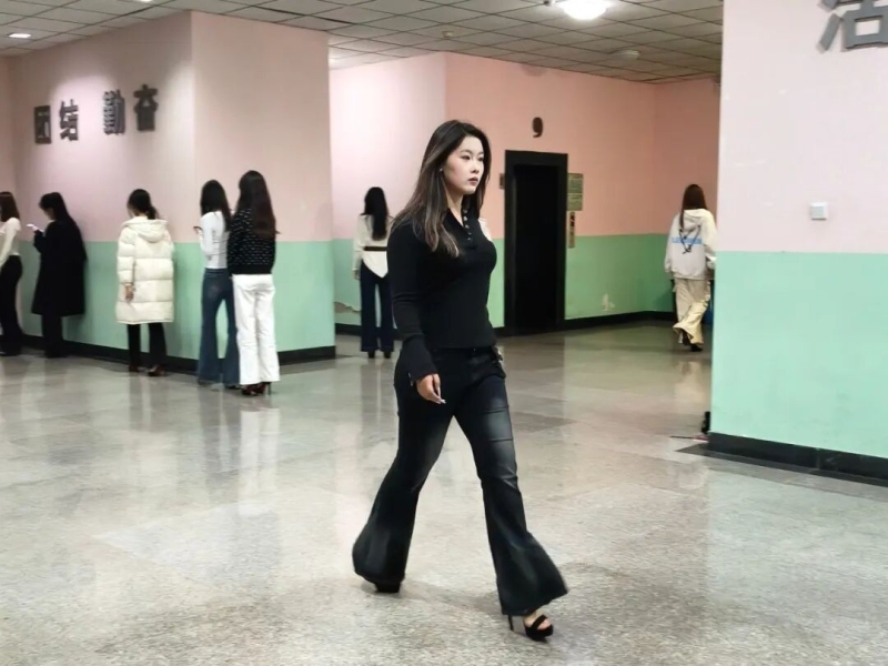 服装表演社排练区满是专注,大家跟着社团成员打磨台步,彼此眼神打气,退场后互相夸赞,默契十足。