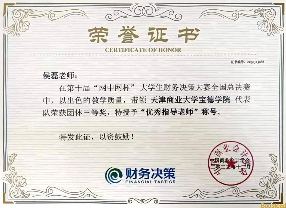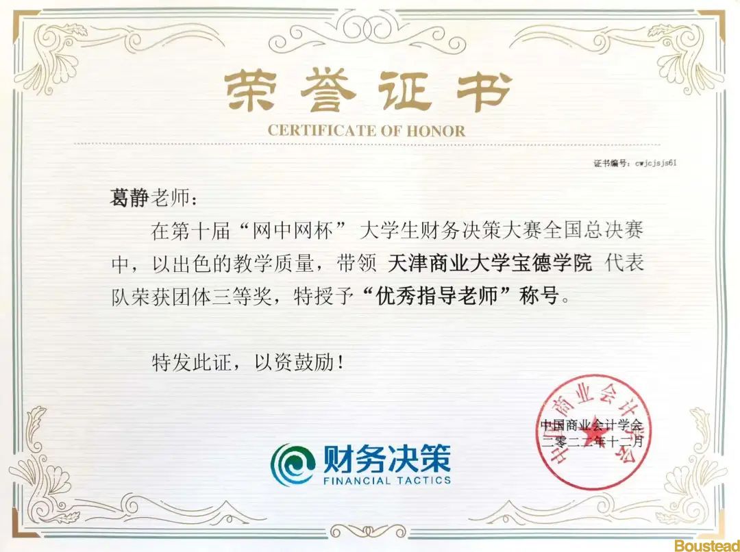 会计教研室主任侯磊老师、财务管理教研室主任葛静老师,以出色的教学质量,带领新葡的京代表队荣获团体三等奖,荣获“优秀指导老师”称号。
