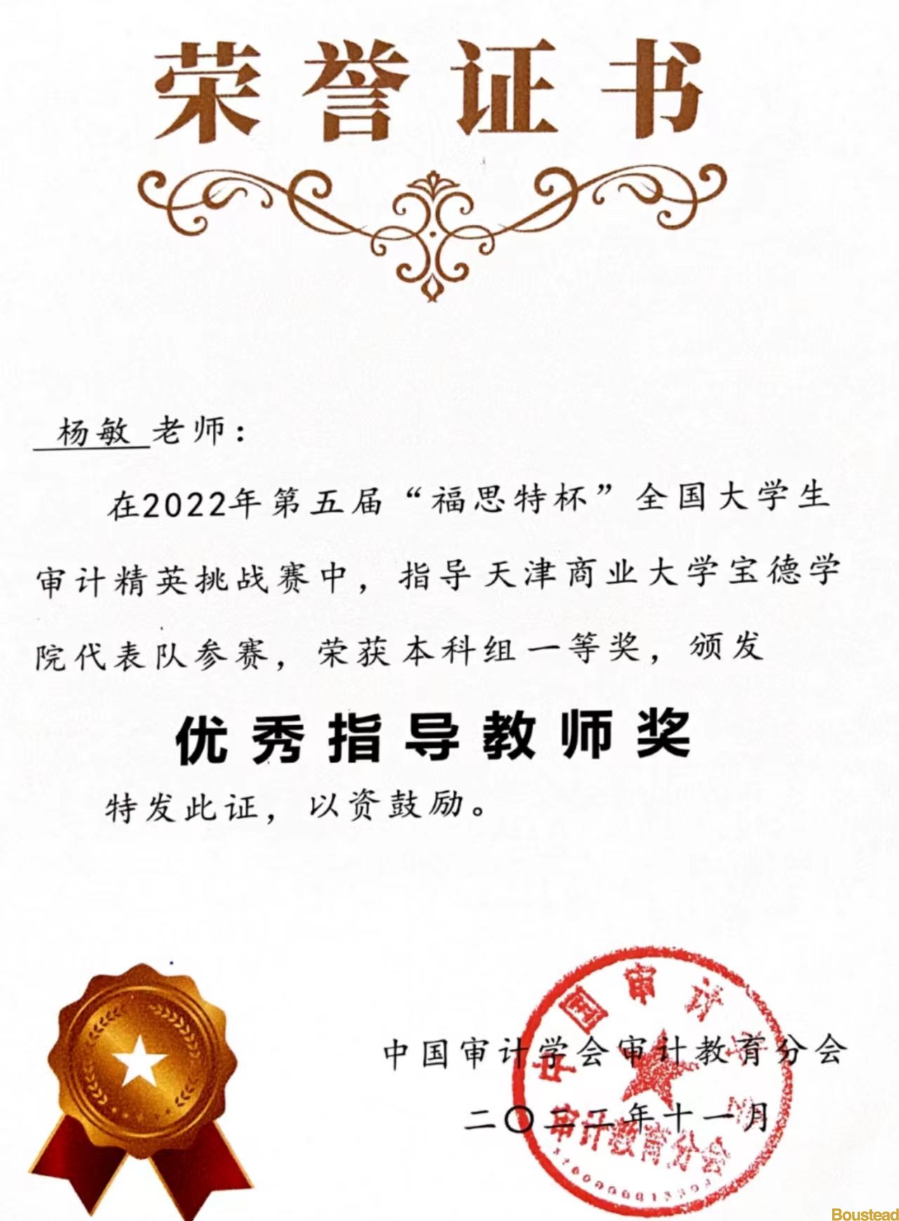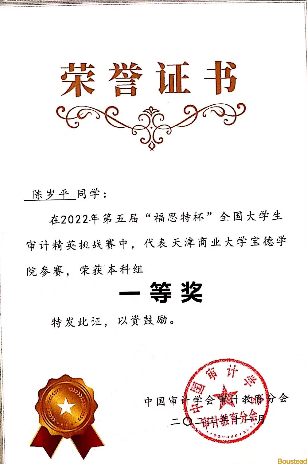 我系学子:审计1901班陈岁平、审计1902班张衡、干子娟三位同学组成的新葡的京代表队,成绩优异,荣获2022年第五届“福思特杯”全国大学生审计精英挑战赛本科组“一等奖”。