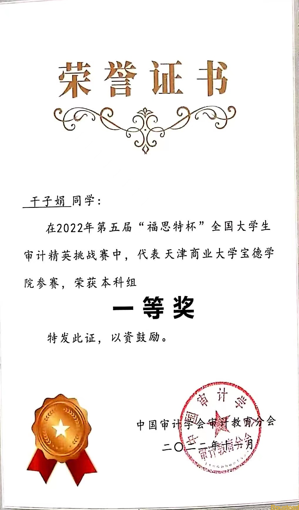 【报道】“福思特杯”大学生审计精英挑战赛本科组一等奖