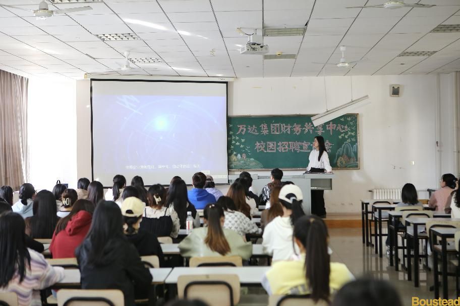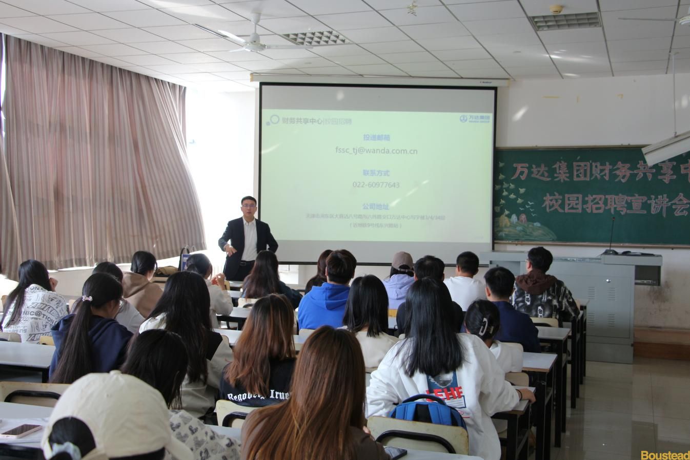 随后,万达集团财务共享中心企业代表向学生们详细介绍了其公司及职位需求,同时分享了他们的工作经验和职业发展建议。学生们认真聆听,积极互动,表现出强烈的求职热情和应聘信心。