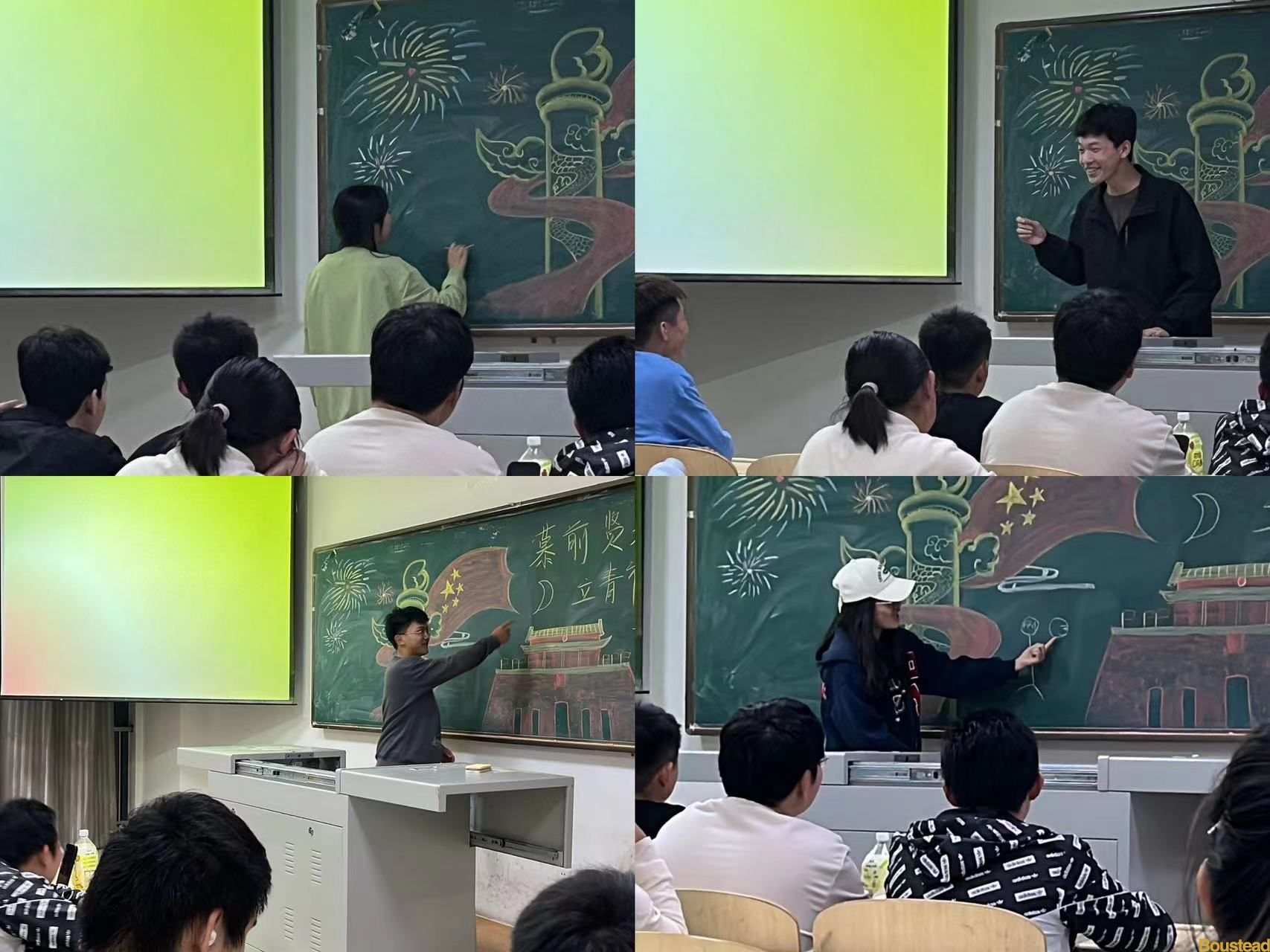 接着,团支书及心理委员采用随机点名的方式邀请同学们参加“看词作画”互动环节,其余同学根据画作内容进行猜测。所选词句与爱国主题息息相关,增加趣味性的同时,加强每个同学内心的爱国意识。