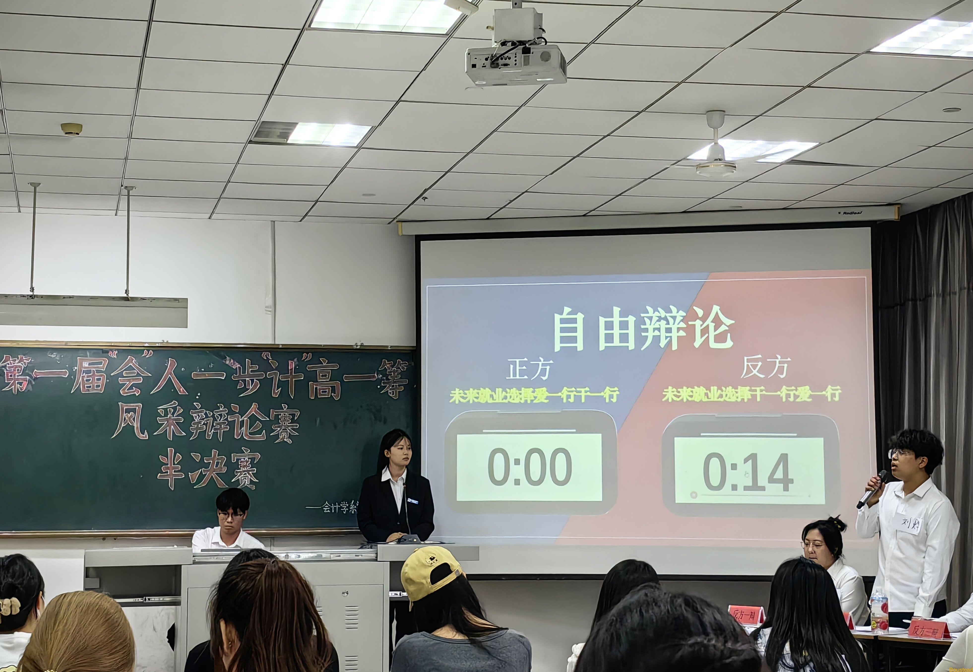 为丰富大学生课外生活,发掘培养辩论人才,提高同学们的逻辑思维能力、语言表达能力和团队协作精神,鼓励大学生激发创新思维,促进大学生全面发展,会计学系于4月15日-5月13日特此组织举办“会”人一步,“计”高一筹风采辩论赛。