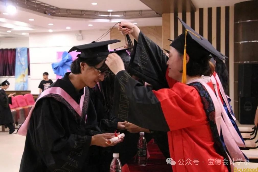 会计学系系主任李虹教授、教学副主任赵宏伟教授、会计教研室主任侯磊、财务管理教研室主任葛静、财务管理教研室教师魏亚平教授、财务管理教研室教师刘桂英教授、会计教研室教师齐征教授、教学秘书吴云出席仪式,会计学系党总支书记、行政副主任王月主持仪式,2024届毕业生和系内辅导员老师们共同参加。