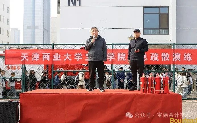 于2024年11月7日中午12:00我系24级新生在我系老师的的带领下,24级全体新生参与全院消防演练活动,宝德学院院长宣布演练开始。