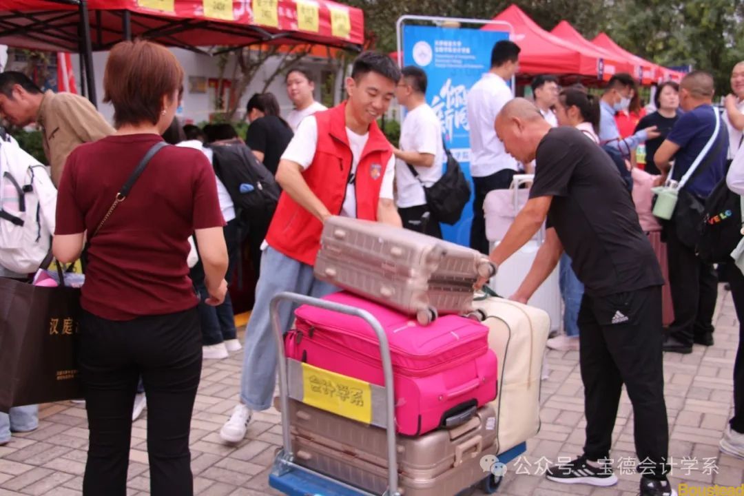 志愿者们忙碌的身影随处可见,他们布置迎新场地,摆放指示牌,确保每一个细节都尽善尽美;他们引导你们办理入学手续,运送你们的行李,介绍校园的各个角落......他们用热心和耐心,帮助你们消除初来乍到的紧张和不安。