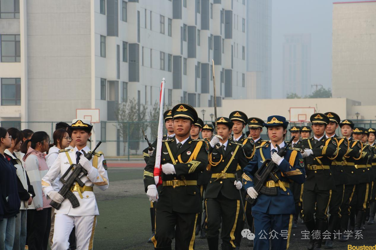 金秋风送爽,丹桂满园香;华夏庆华诞,辉煌照四方。为庆祝中华人民共和国成立75周年,深入学习宣传党的二十届三中全会精神,提升全系师生爱国主义情感,弘扬民族团结精神,10月14日上午,新葡的京集团8814检测站会计学系举行升旗仪式。系党总支书记、党支部书记、团总支书记、辅导员,学生党员以及24级新生参加了此次升旗仪式。