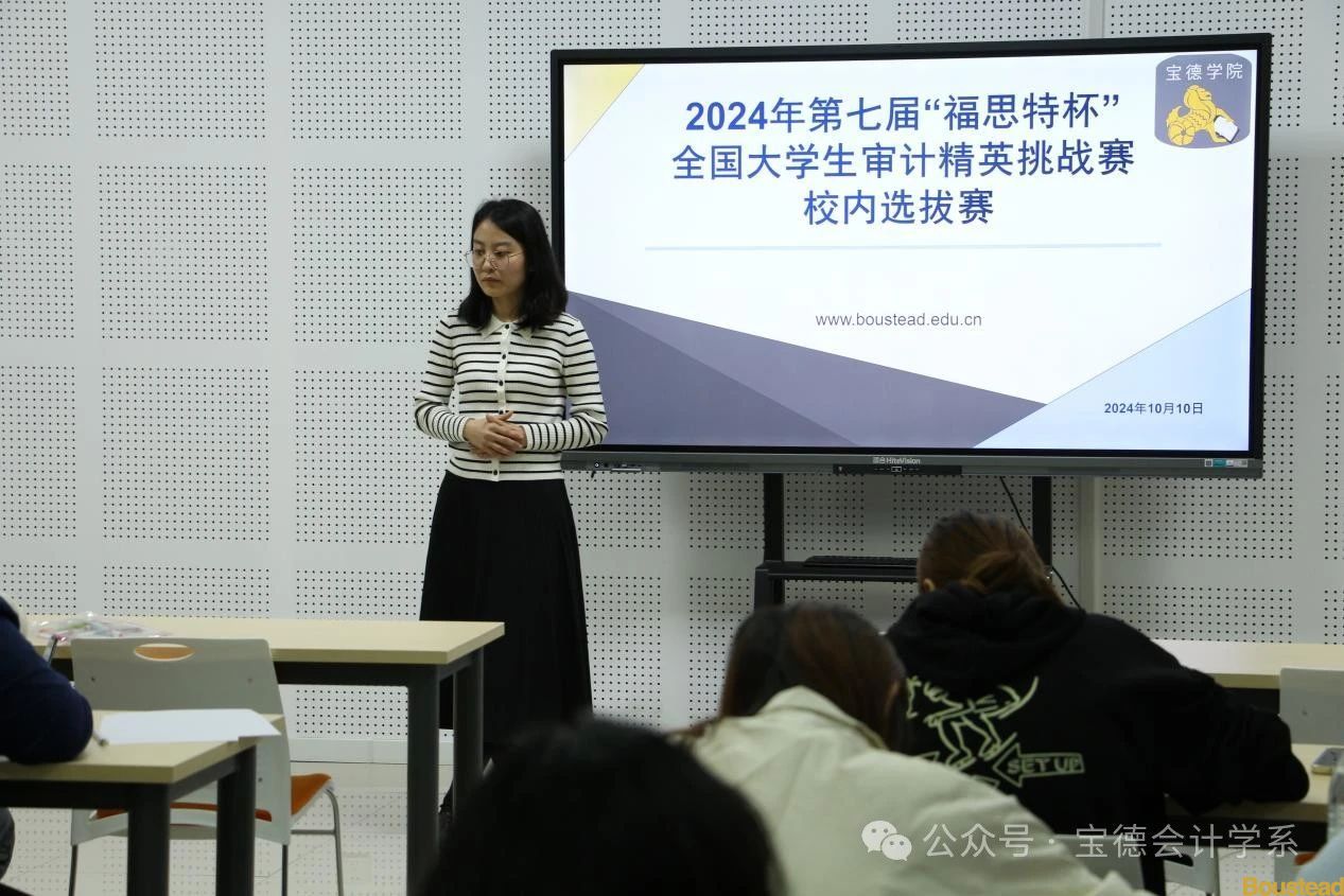 为深入贯彻党的二十届三中全会精神,推动我国审计学专业自主知识体系构建和拔尖创新人才培养,积极探索审计学专业发展的新领域、新路径和新方法,创新实现大数据、区块链等信息技术与审计专业教育的深度交融,培养适应社会经济发展需要的高素质专业化审计人才,会计学系于2024年10月10号特此组织举办第七届“福思特杯”全国大学生审计精英挑战赛校内选拔赛。