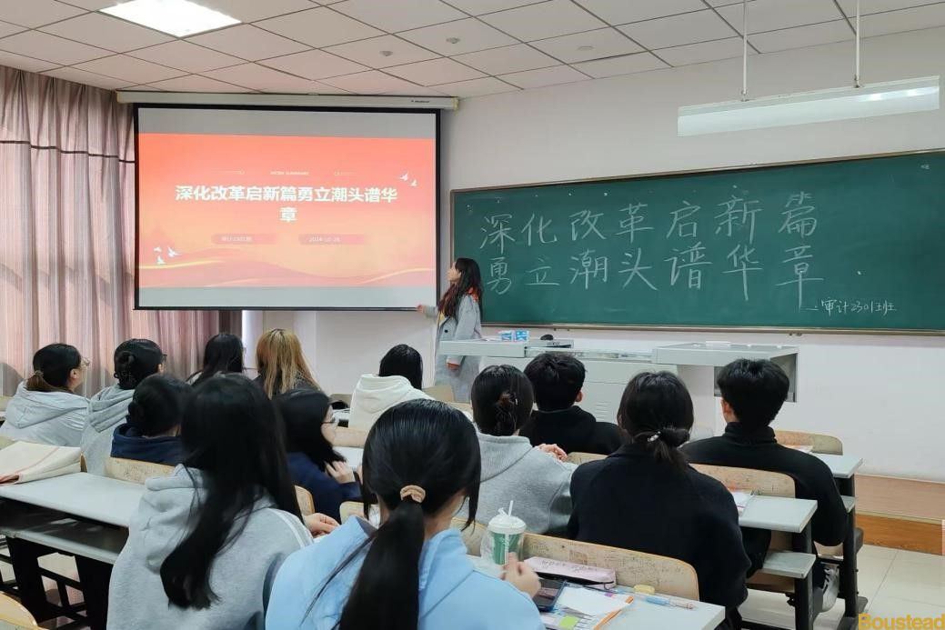 深化改革启新篇,勇立潮头谱华章。通过活动,审计2301团支部认为改革精神是团员青年们应该具有的最基本的精神素养,是团员青年们衡量勇于探索的标杆,通过本次活动,大家对改革与担当有了更全面的了解,同时联系现实生活对“深化改革精神”展开了激烈的讨论,而本次团日的目的也在激励着团员青年们每个人深入了解改革精神,并且能更好付诸于实际行动中。为落实活动精神,审计2301团支书带领团员青年们进行了观看关于党的二十届三中全会的相关视频。相信只要贯彻好改革精神,团员们在这种精神的激励下,能够更好地践行社会主义核心价值观,将个人理想与国家发展紧密结合,在实现中华民族伟大复兴的征程中发挥自己的光和热。